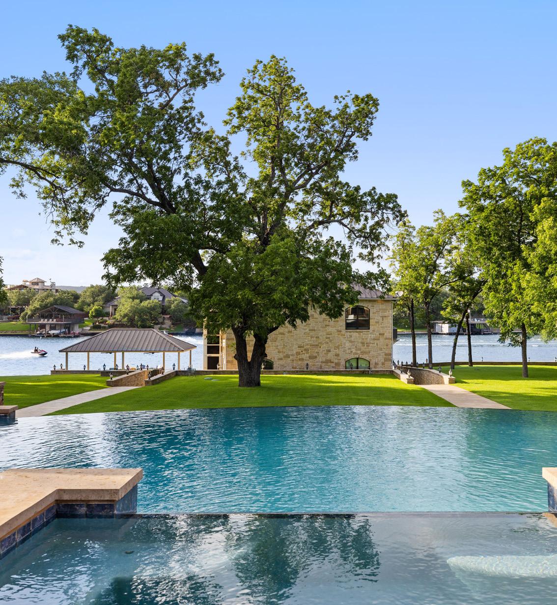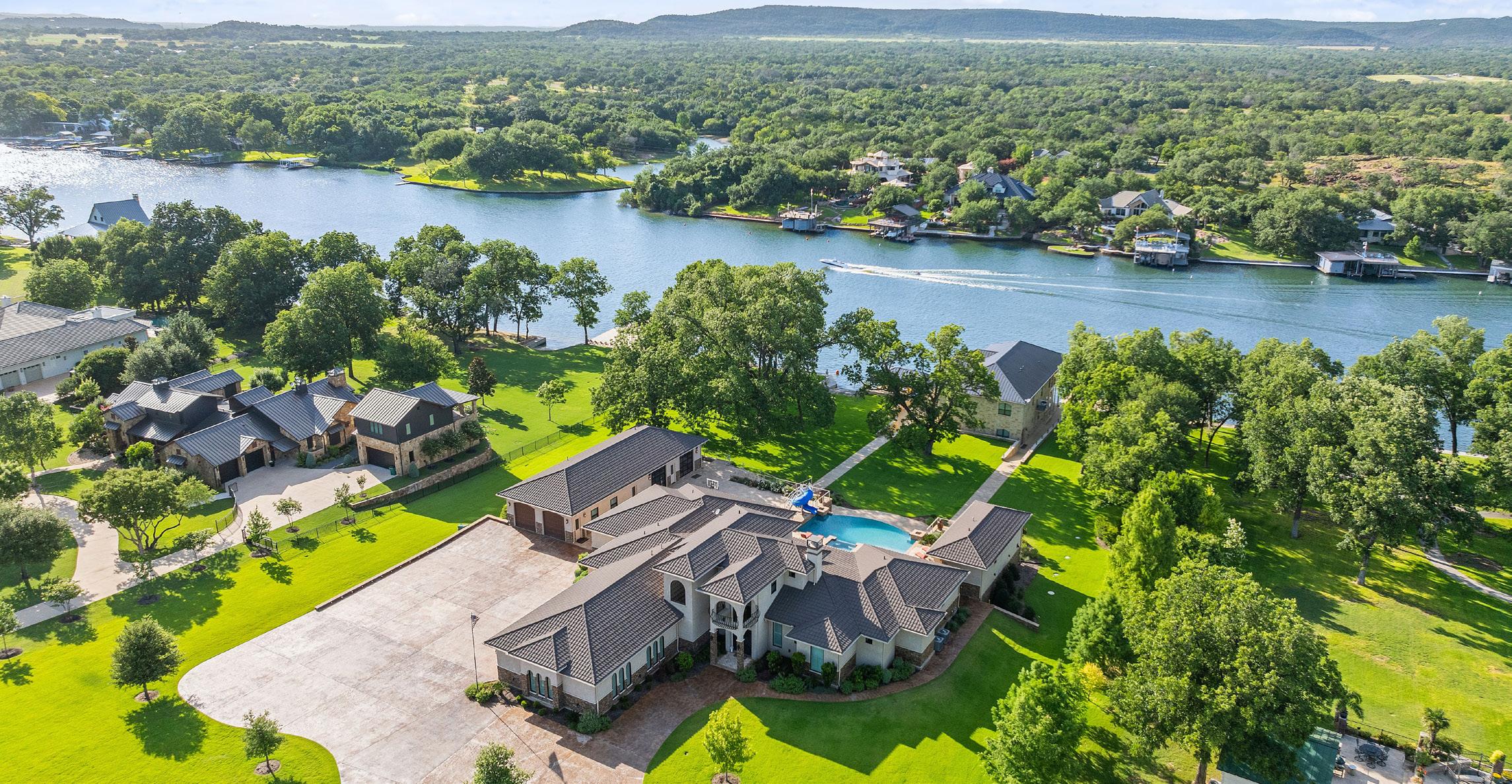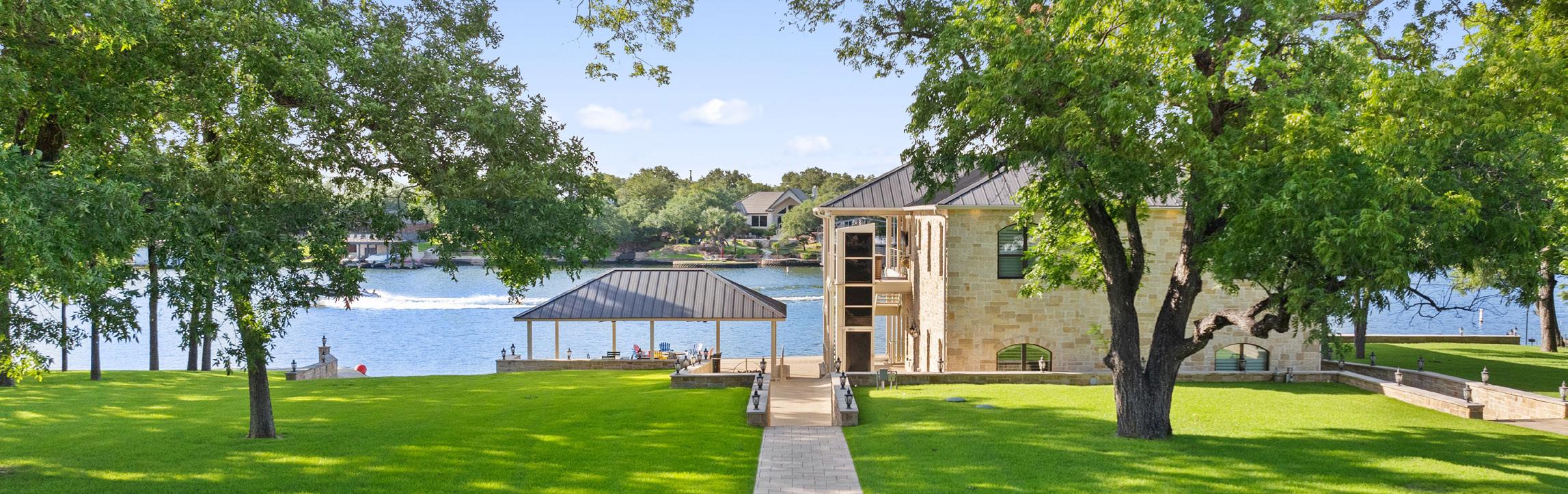 Discover the epitome of Lake LBJ waterfront luxury! This 3.3-acre estate in the gated golf & waterfront community of The Legends offers 250’ feet of breathtaking open waterfront. It features a stunning blue negative-edge pool with a spa and slide, a spacious covered patio, and an extraordinary man cave with a full bar, pool table, and ice cream station. The multi-generational design includes an open-concept main living area, a gourmet kitchen, a theater room, a primary suite with a spa bath, and multiple guest suites. The beautifully landscaped grounds lead to lakeside entertaining areas, a summer kitchen with a BBQ/fire pit, and a boathouse with living quarters and amenities. Constructed in 2020, this 9,788 sq ft estate includes eight bedrooms, nine full baths, two half baths, a five-car garage, offered fully furnished with watercraft, ready to start living your best life on Lake LBJ!