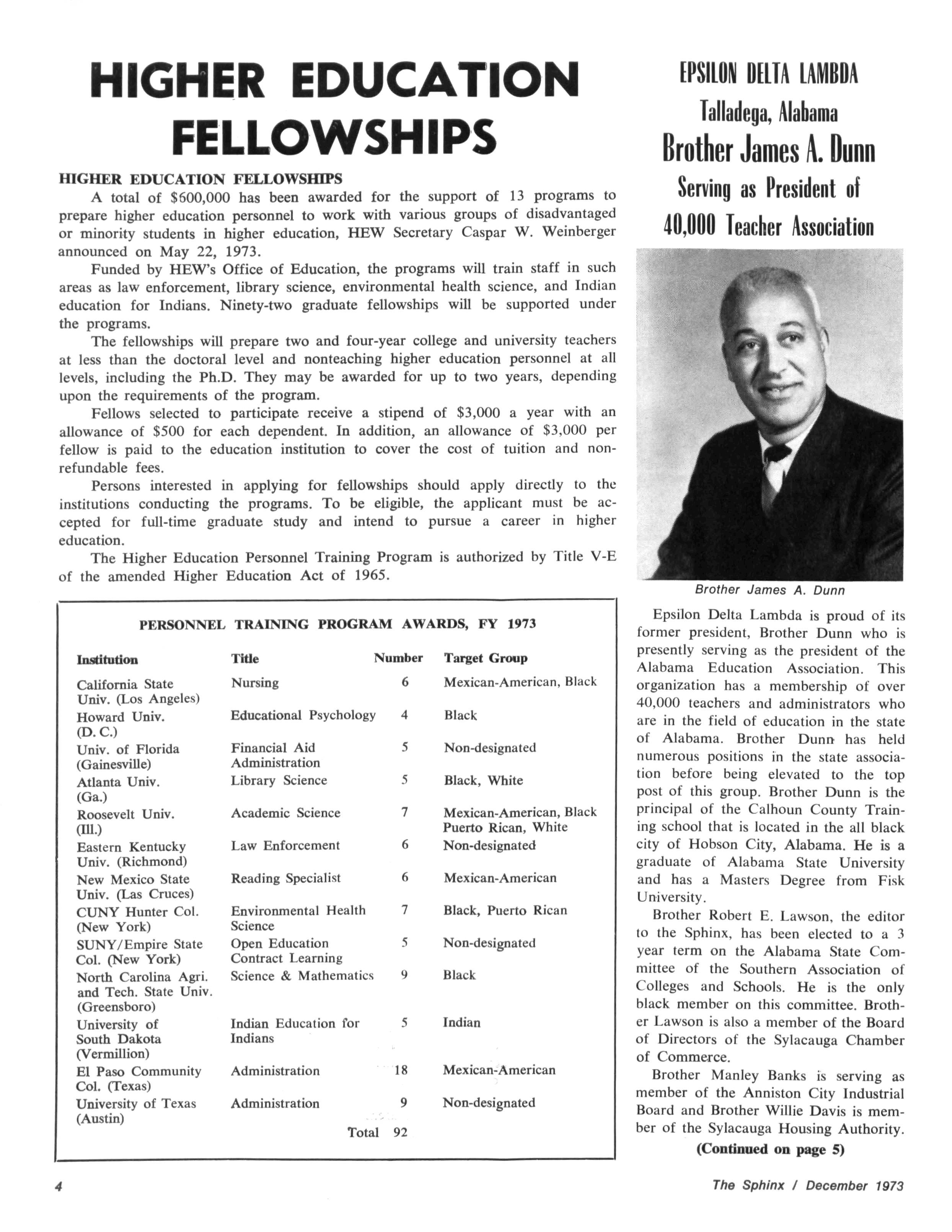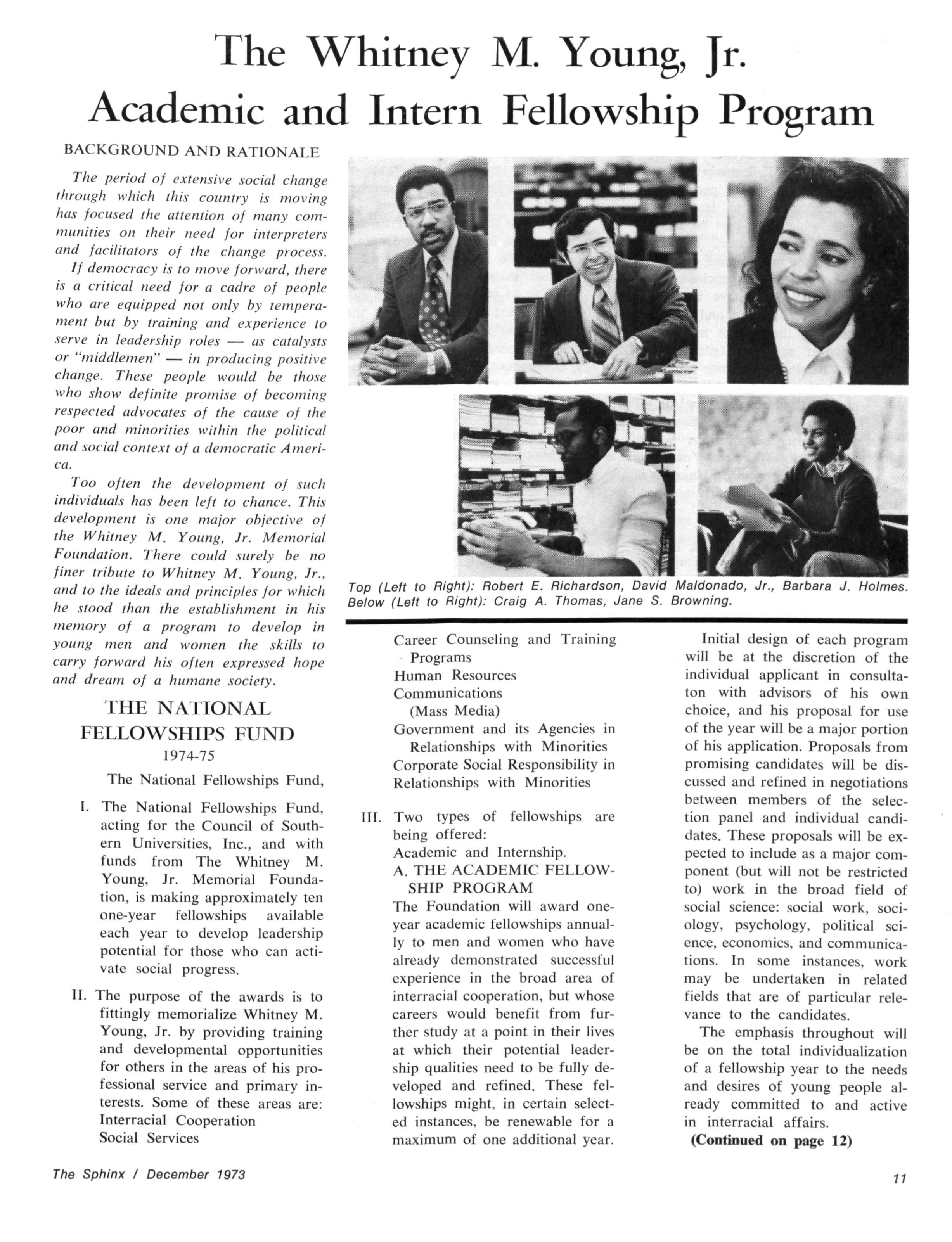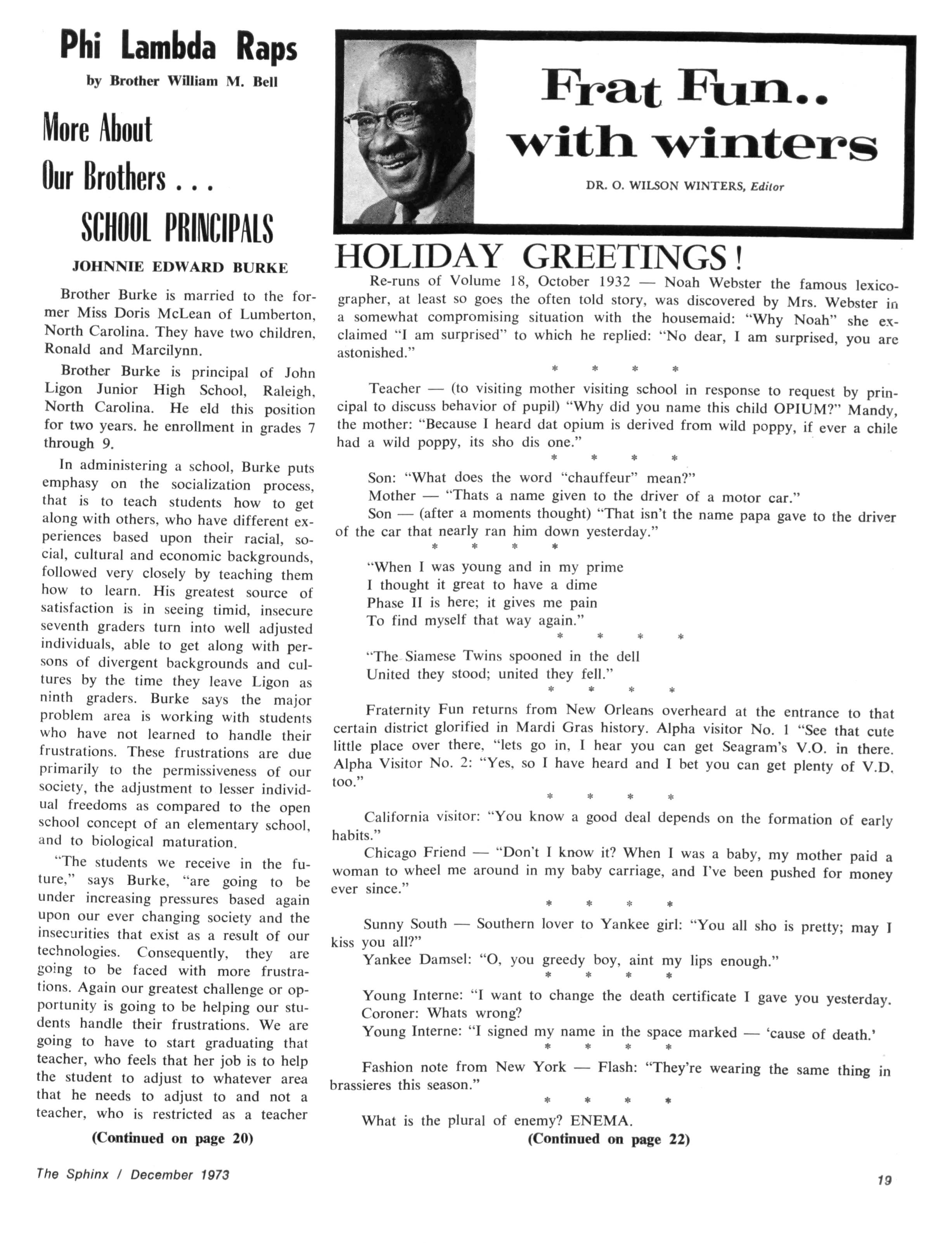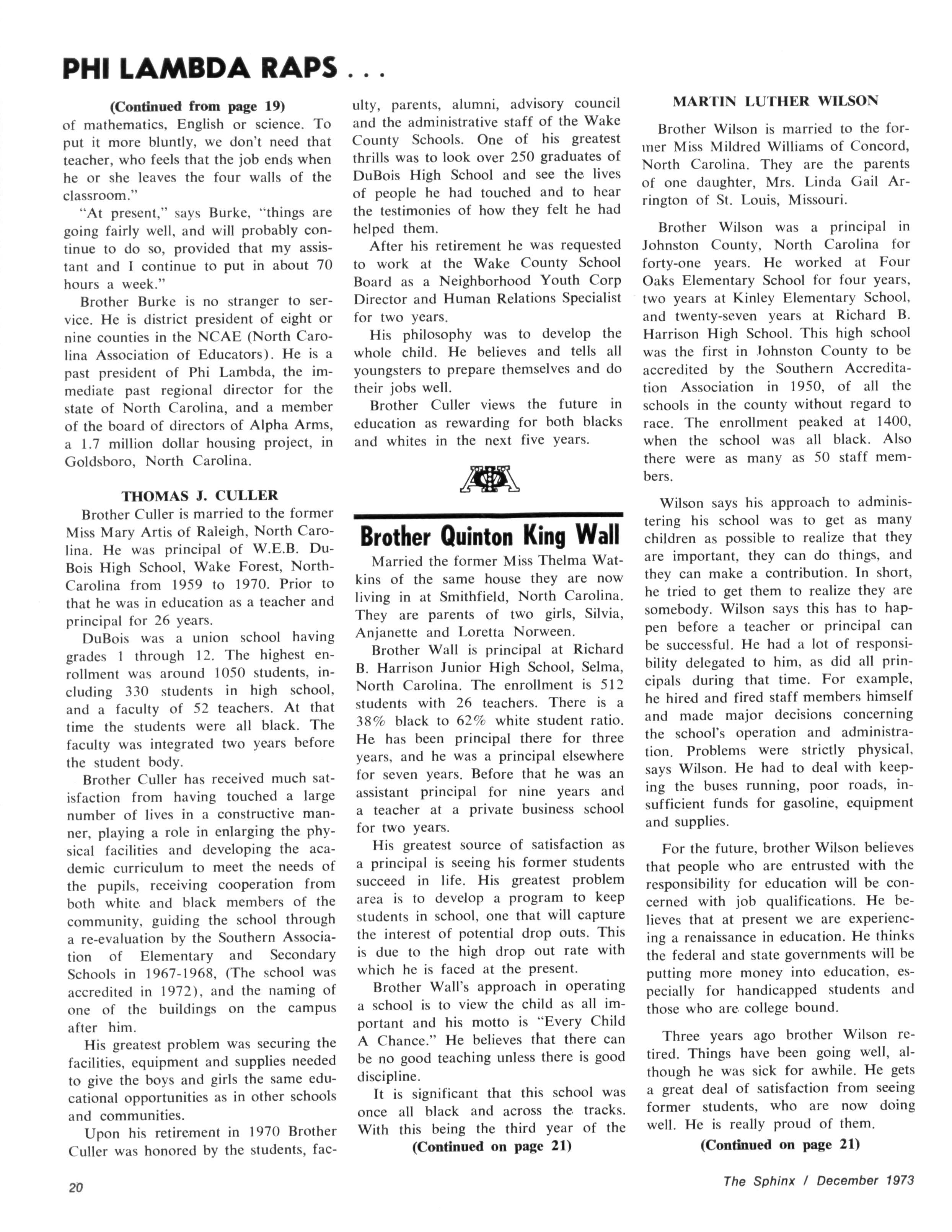 The Sphinx is the official magazine of the Alpha Phi Alpha Fraternity, Inc., 4432 Dr Martin Luther King Dr., Chicago, III., with editorial offices at 4728 Drexel Blvd., Chicago, III 60615 Published four times a year: February, May, October and December Address all editorial mail to 4728 Drexel Blvd., Chicago, III 60615 Change of Address: Send both addresses to Alpha Phi Alpha Fraternity, 4432 Dr Martin Luther King Drive, Chicago, III Manuscripts or art submitted to The Sphinx should be accompained by addressed envelopes and return postage Editor assumes no responsibility for return of unsolicited manuscripts or art