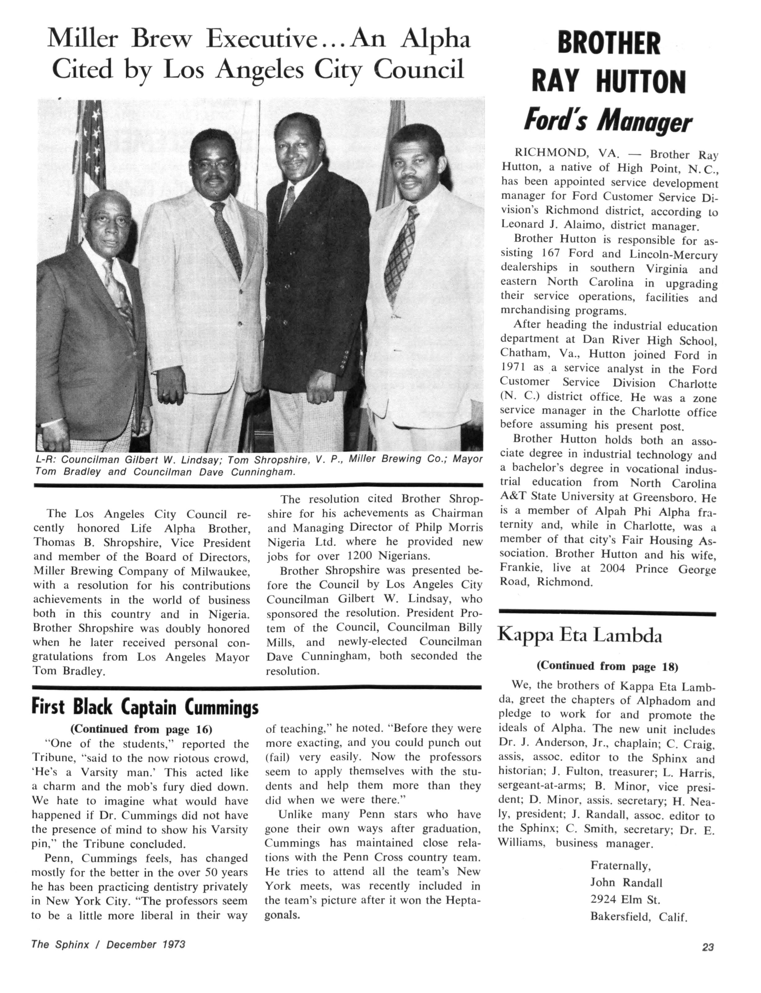 Enclosed is a copy of an article published last month in the daily paper of the University of Pennsylvania, the school I graduated from Several of our brothers here in New York and Philadelphia thought I should send you a copy As they thought a notice of it in the Sphinx would be of interest to all of our brothers, especially the younger ones who are interested in Black History The article makes known historical facts that very few people know about. Hope it will interest you Merry Christmas and Happy New Year. Thanks and stay heakhy, I am Yours fraternally, Brother Willis N Cummings