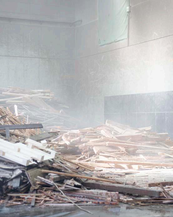 処理工場には、さまざまなものが廃棄物として持ち込まれます。不 要になり捨てられたものですが、ひとつずつ丁寧に分別すると、元の 姿、つまり、木材、金属、プラスチックなどの素材へと還すことがで きます。私たちが捨てたものを分別し、資源に変えてくれている人た ちがいるのです。こうして再資源化された素材を利用すれば、新品の 建築資材を使う必要がないので、石油などの天然資源を使う量が減り、 環境負荷を軽減したものづくりができます。石坂産業が素晴らしいの は、この分別に徹底的にこだわっていること。実に 98 %の廃棄物をリ サイクルしていて、その技術は日本でもトップクラスです。