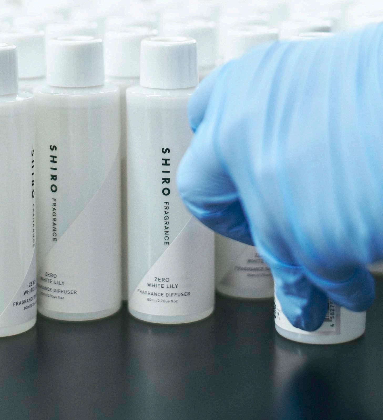 ZERO COLLECTION FRAGRANCE では、 SHIRO の工場 などで眠っていた香料や容器を使用して、二度とつくれな い香りづくりに挑戦しました。香料の使い方を定める国際 機関の方針転換や、リニューアルによって使われなくなっ た香料が倉庫の片隅に眠っていたのです。さらに、キズな どの不良を見越して少し多めに仕入れていた容器も積み重 なっていました。品質の高い製品をつくろうとする過程で 生まれるこれらの余剰品に丁寧に向き合い、捨てるのでは なく、組み合わせることでまったく新しい香りと魅力を生 み出しました。