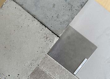 生まれ変わった店舗では、さまざまなマテリアルを感じていた だけます。カウンターの天板は、石坂産業が、建設解体現場から 出る廃棄物を徹底的に分別・分級した精選土からつくった「 NS-10 (Natural Sand-10)」という再資源化された素材からつくりました。