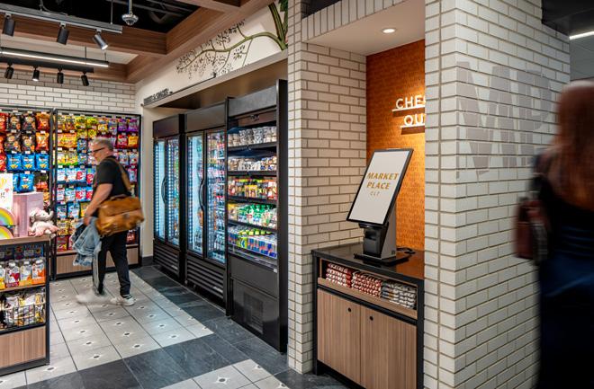 food market to deliver a cohesive, gourmet, food-centric experience. The market featured a wide variety of food and beverage venues alongside a modern grocery offering diverse international selections. Upon opening, the store also incorporated robotic food preparation equipment and provided an outdoor communal gathering space to enhance the customer experience.