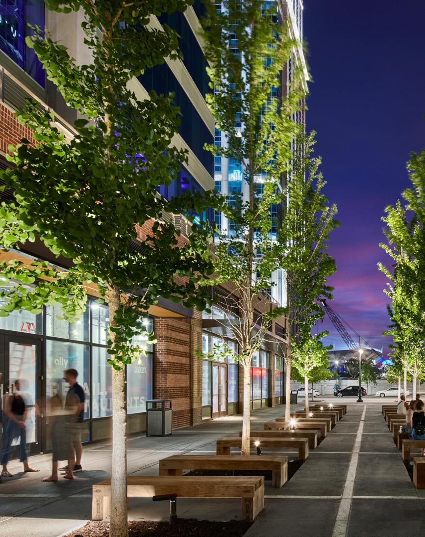 This 42,000+ square-foot retail hub within a mixed-use development seamlessly blends vibrant outdoor amenities with dynamic building forms to create a destination that serves both tenants and the surrounding community.