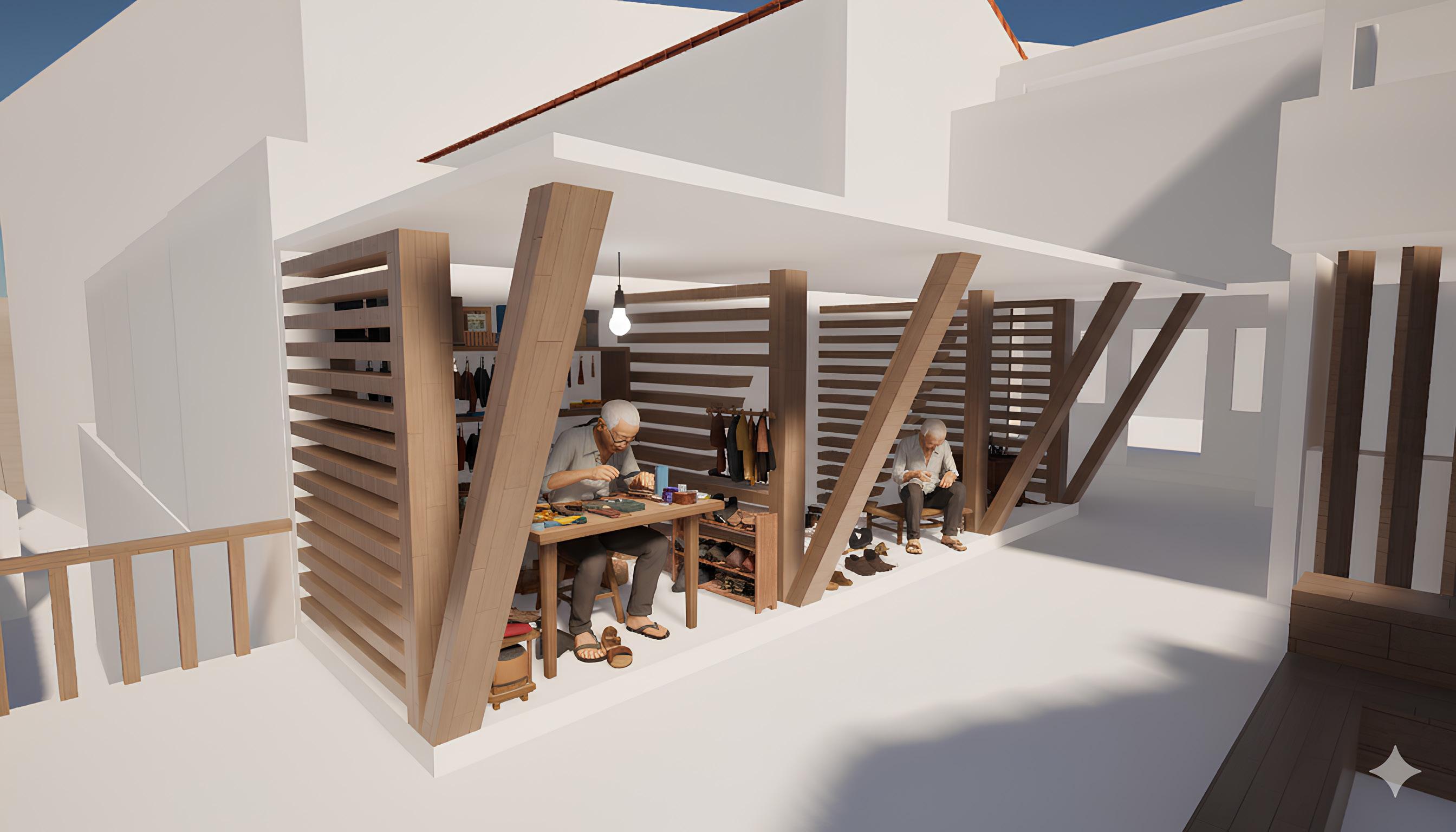 This project reintroduces the elderly into the shophouse district through careful occupation rather than replacement. By activating overlooked pocket spaces, a small-scale community hub is proposed—supporting rest, social interaction, and daily activities within a familiar and accessible environment. Rather than isolating the elderly, the space remains open, encouraging intergenerational engagement.