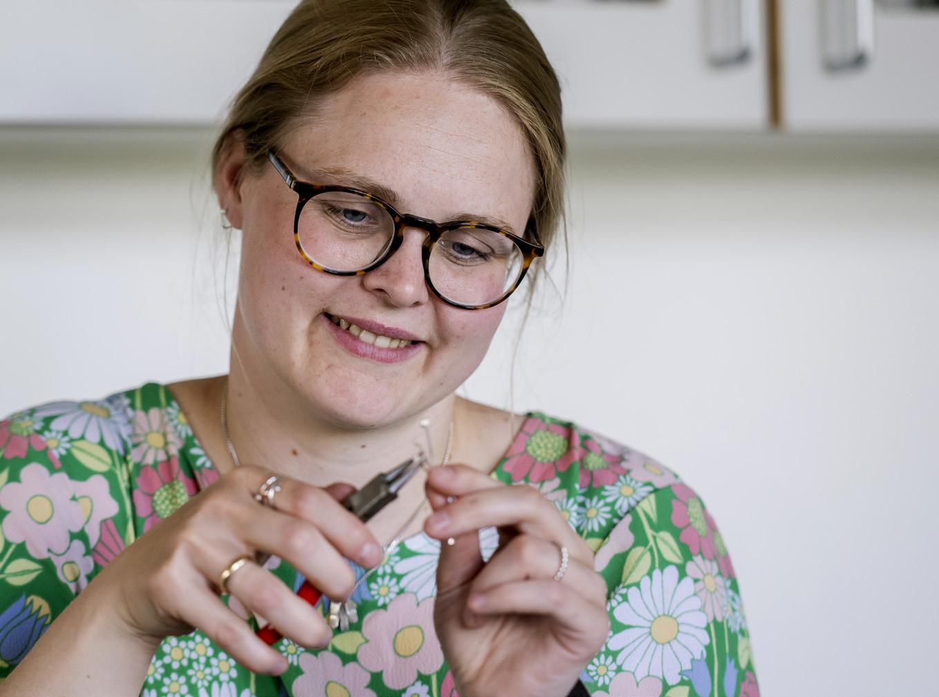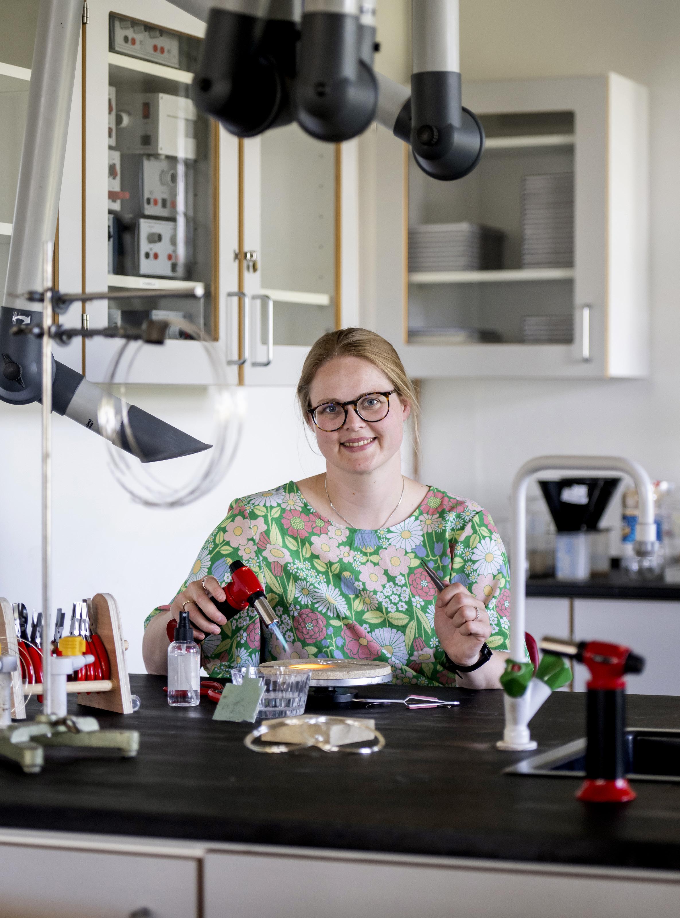 Anne-Lene Wermuth underviser i faget sølvværksted på Kongeådalens Efterskole. Hun oplever, at elevernes idéudvikling giver hende energi som lærer.