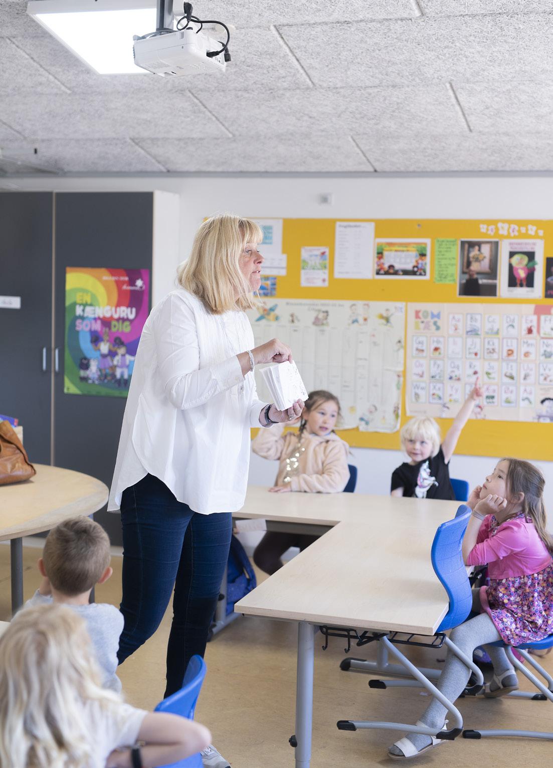 først på tirsdag, og da skal I have nye pladser – det er sidste gang, I får nye pladser i 0. klasse!«, siger Lone Møller, mens jubel og »øøøøv« fletter sig ind i hinanden.