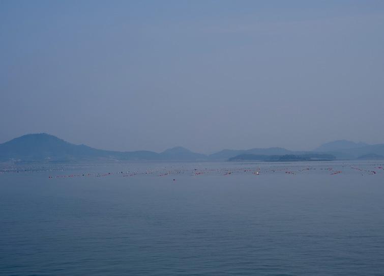 シナンに向かうフェリーの出発は朝 5 時。船内では、塩田で働く人たち がマットに身を横たえ、静かに眠っていました。短い休息を取るその姿に、 働く時間の長さと海の暮らしを思いました。私たちも同じ床に腰を下ろし、 波の揺れに身を任せていると、シナンのひとつの島、シンウィ島に到着しま した。