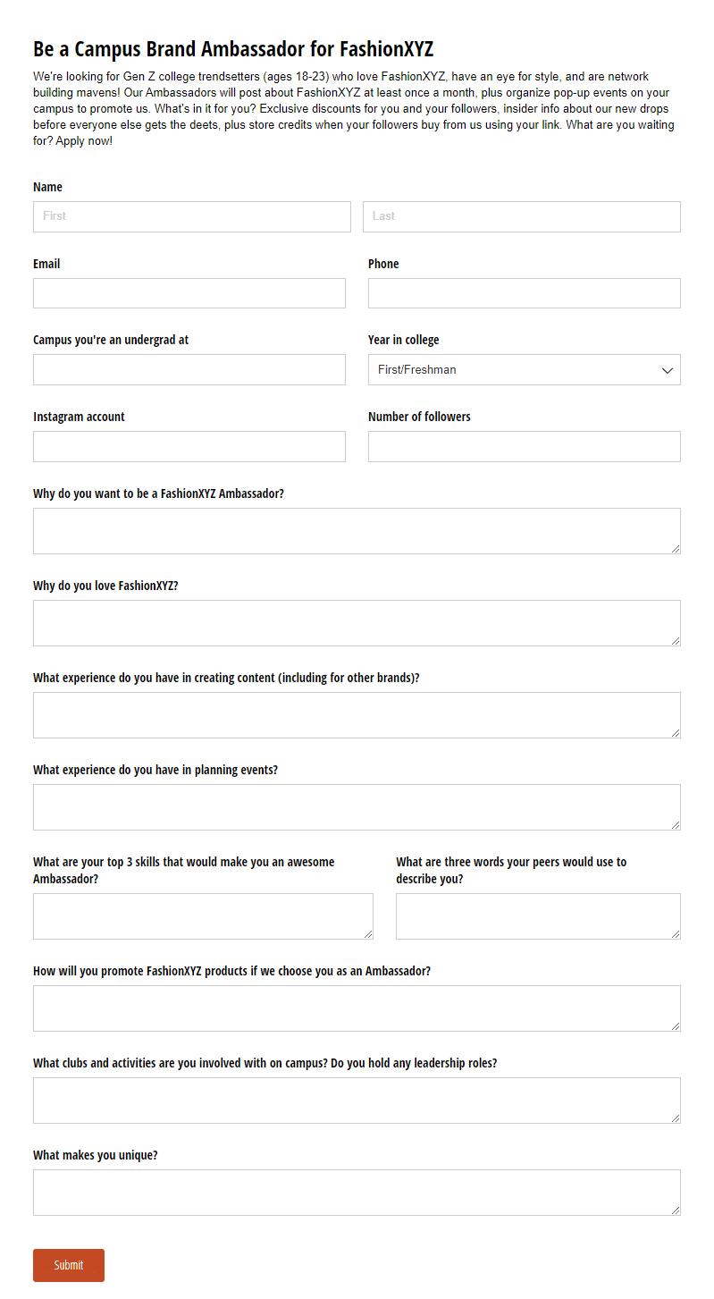 • Reason the influencer to become an ambassador; what does your brand stand for, what is unique about your ambassadors, what is the reward of joining?