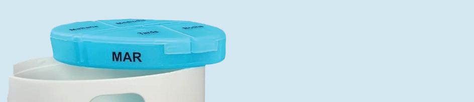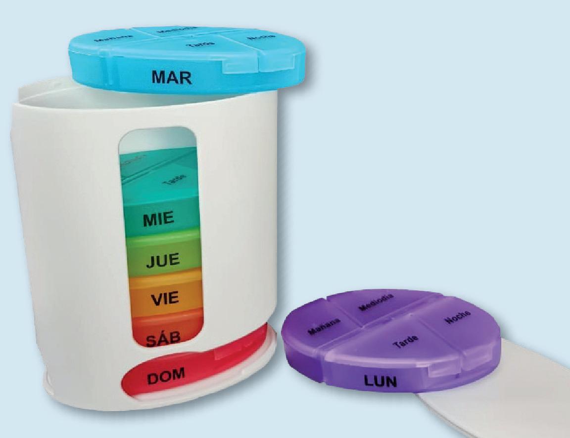 ORGANIZA TUS PASTILLAS PARA TODA LA SEMANA. Incluye 7 bandejas, una por día, con 4 compartimentos: mañana, mediodía, tarde y noche.