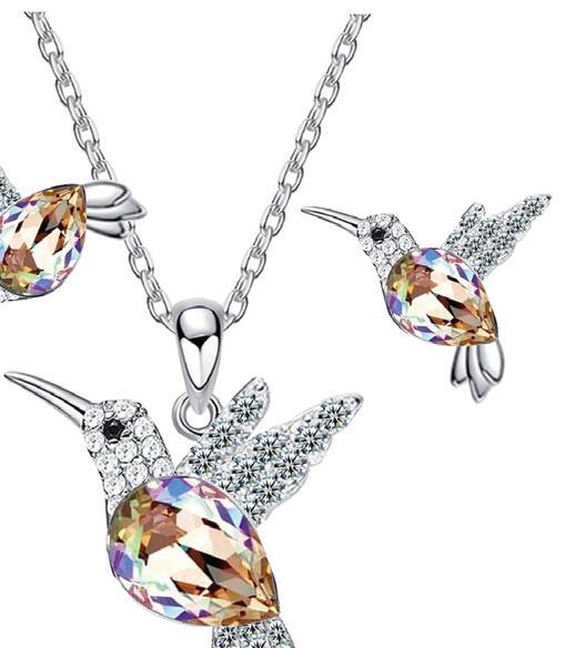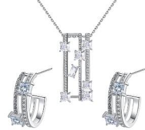 • Diseño delicado y luminoso • Dije 1.2 cm x 2.9 cm • Cadena: 45 cm • Aretes: 0.4 cm x 1.5 cm • Diseño en plata con destellos