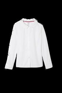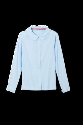 3rd-5th: White or Chambray button up blouse with Peter Pan collar - short or long sleeve; V-neck pullover, v-neck cardigan, v-neck sweater vest; plaid cross tie