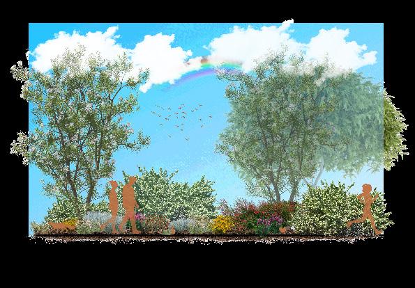 This section cut shows the plant details of the medicinal garden, highlighting which native plants have healing properties as well as their mature sizes.