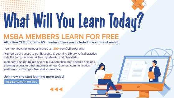 As of this writing, the General Assembly still is in session and it’s too soon to report back on legislative outcomes. Look for updates in the eWeekly and at www.MSBA.org/advocacy.
