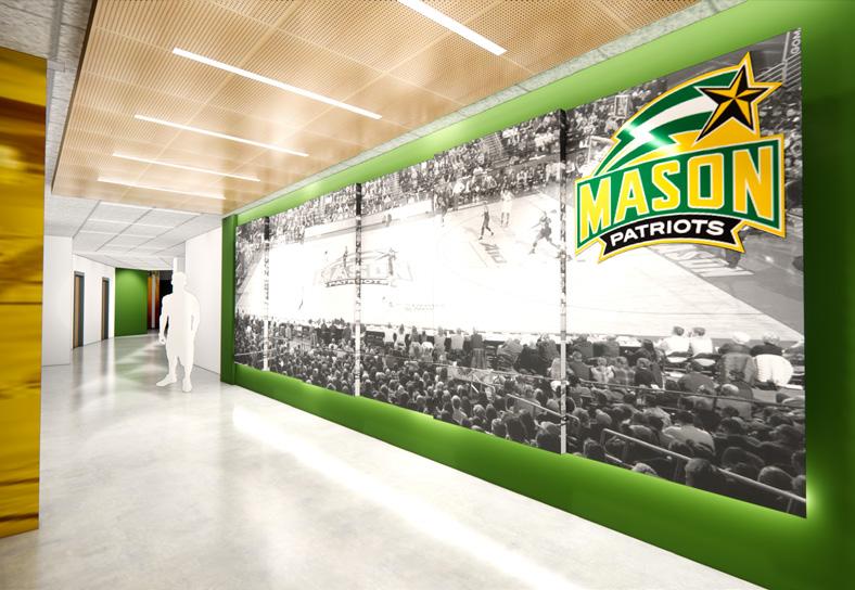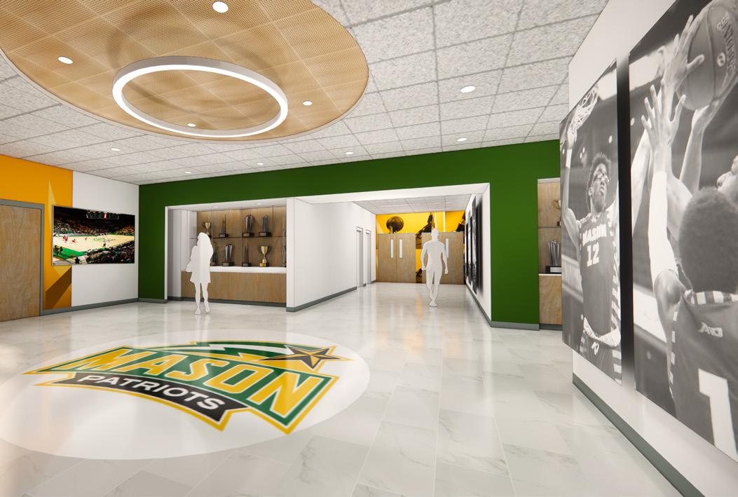 The project is an interior improvement to the existing athletic areas and basketball offices in George Mason University’s EagleBank Arena, formerly known as the Patriot Center. Little’ scope of work includes design services for the athletic lobby and team access to the lockers and event space. The interior refresh provides an enhanced experience for team recruitment and alumni donor fundraising.