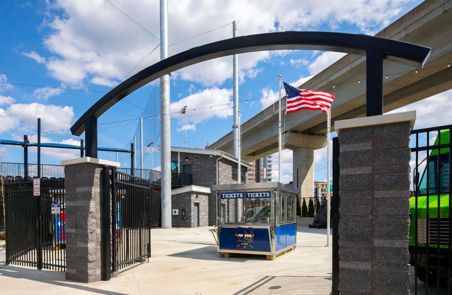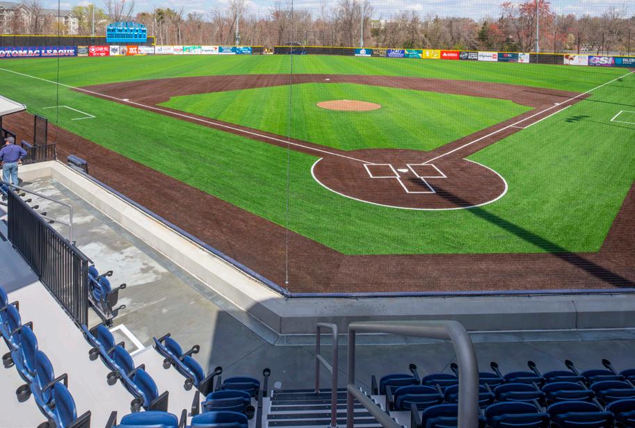 As the premier baseball field in Northern Virginia, this project serves collegiate baseball, elite travel baseball, and community events. The fan experience includes a welcome plaza with amenities including food trucks and photo opportunities. The aesthetic recalls the heritage of baseball parks throughout the years and provides an exciting experience for all ages. The current seating includes a 300-seat elevated grandstand with full-back seating and overhead sunshades. There is astounding visual access to the game with specialized netting that places structure behind the grandstands allowing for amazing sight lines. The player experience is unparalleled with an artificial turf field and natural clay mound with the sunken dugouts, expansive batting cages, and bullpens offer the best in-player preparation facilities and game support.