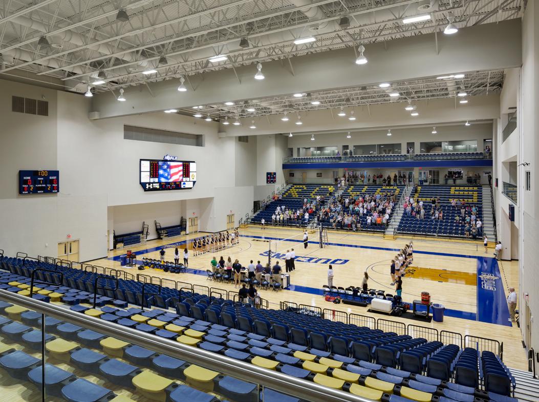 When the intercollegiate and intramural athletic programs became too numerous for Campbell’s 40+-year-old gym, University administrators decided to create a new Convocation and Student Center to serve the unique needs of its diverse student body. Working with the University, our team designed a competition area that comfortably seats 3,860 people for multiple sports programs, yet is flexible enough to be modified for concerts, guest lecturers and other special events. The arena is also utilized for summer camps, convocation events, and as an alternate graduation venue during inclement weather.