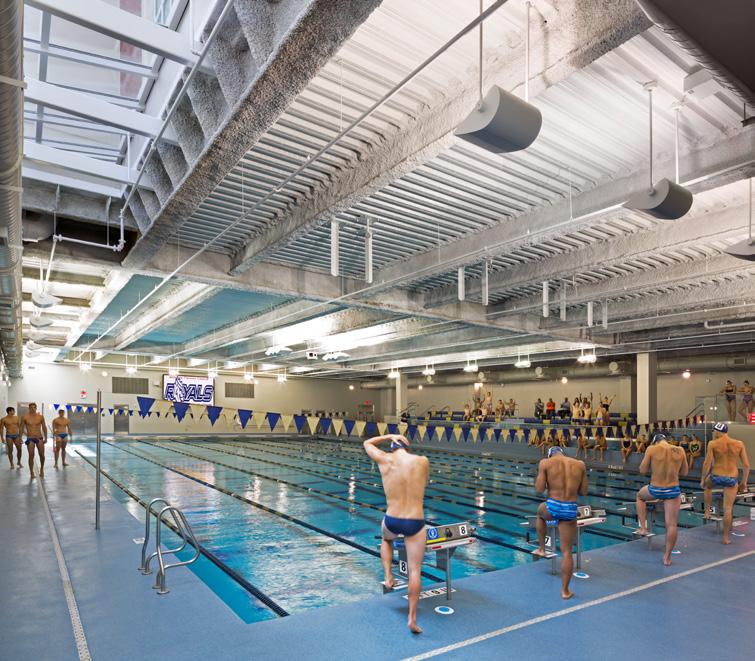 This project is an integrated addition to the existing Athletic Center on The Catholic University of America campus. The addition includes a 25-yd X 40-meter competition pool with spectator seating, 2-court gymnasium, elevated track, athletic performance training, training room, athletic offices, locker rooms, climbing/bouldering wall and support spaces. The addition is part of the Athletic Framework Plan to enhance and maximize the utilization of the existing facility and minimize the total new construction including outdoor fields primarily for athletic as well as student use.