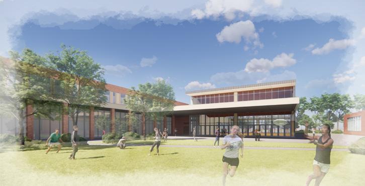 Ravenscroft’s Student Center will enhance student’s daily life by providing spaces to study, dine, and socialize during their school day. The daylit center has views to the outdoor quadrangle, as well as outdoor dining and activity areas. Seminar and wellness rooms provide spaces for students during study periods, lunch, or while waiting for after school activities. In addition to daily activity, the center will provide prefunction space for the school’s gym.