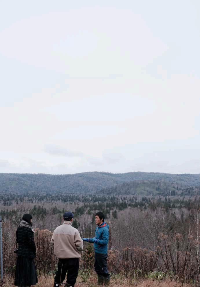 降りやまない雪の中、編集部はさらに北へ向かいます。目的地は北海道 大学が管理する「雨龍研究林」です。ここには、人の手が入った形跡のな い「原生林」が広がります。私たちが目にする多くの森は、人工的に植樹 された単一の樹種がまっすぐに並んで生え、美しく見えるのですが、北海 道の生態系としては不自然です。一方、自然が生んだ森は、針葉樹と広葉 樹が混在し多様な生態系が保たれます。「みんなの森」の予定地は、まだ 短い期間ではありますが、人が手を入れず自然発生的に森が育ち始めてい ます。現状では荒れ地に見えるかもしれませんが、若い森の誕生なのです。