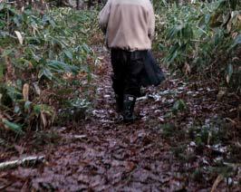 高速道路を降り、収穫を終えた畑の間を駆け抜けると、突然視界が開け ました。谷のように凹んだ大地に若い白樺が立ち並び、新しい森が育って います。池や湿地もあり、鹿の角や小動物の食べ残しなど動物が棲んでい る痕跡も見つけることができました。ここは、SHIRO が新しく始める「み んなの森」となる予定の場所です。鳥や動物、植物を観察する小屋、採取 した植物の加工場、見晴らし台などを整備し、自然に根ざした農業や生き 方を伝える開かれた森にするため、準備を進めています。