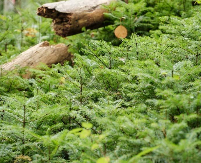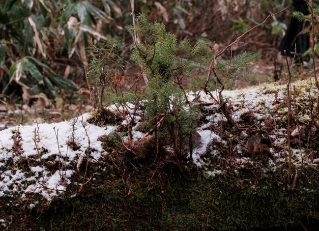 倒れた木から育つ、新しい木。この中のいくつかが育ち、数十年後には大きな木になっているはず。