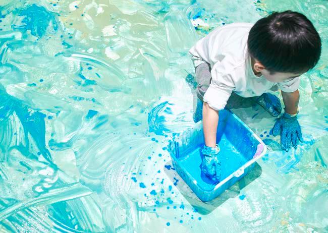 2024 年 11 月、改装中のルミネエスト新宿店で開催した「床ペイントワークショップ」。子どもも大人も みんなで、自由に、楽しく、色を重ねていきました。ご参加くださった皆様、ありがとうございます。