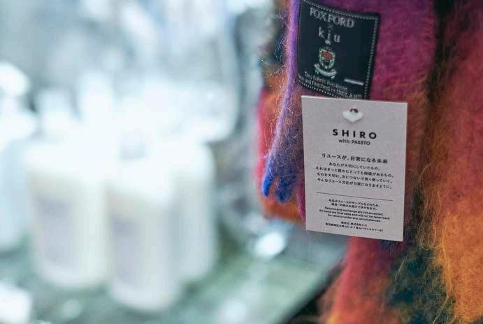ECOMMIT はPASSTOという資源循環サービスで衣類回 収の取り組みをされています。その活動を知り、廃棄される 衣類を 1 枚でも減らし、リユースさせることが未来の地球の ために重要なアクションだと考え、ガラス容器と一緒に衣 類も回収してきました。 2024 年 11 月、渋谷 PARCO で行っ たPOP UP STORE「 SHIRO with PASSTO 」では、回収し た容器を再使用してつくられた「 ZERO COLLECTION 」 より、ゼロホワイトフィグとゼロムスクサボンの 2 種の香りを 販売しました。また、回収した衣類の中から、「この服が着 たい」と思っていただける魅力的なリユースの衣類をセレク ト。プロダクトの新しい価値や魅力を創造するPOP UP STORE では、 SHIRO のお客様はもちろん、今まで SHIRO と出会うことがなかった方々にもお買い求めいただけました。