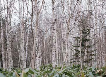 森の中ではすべてが関係し合っており、少しでもバランスが崩れると大 きな影響が出てしまいます。北海道に広がる豊かな原生林でも、バランス が崩れている様子を知り、事の深刻さを実感した編集部。しかし、悪い発 見ばかりではありませんでした。小林さんは最後に、森の中でも白樺がた くさん立ち並ぶエリアに案内してくれました。