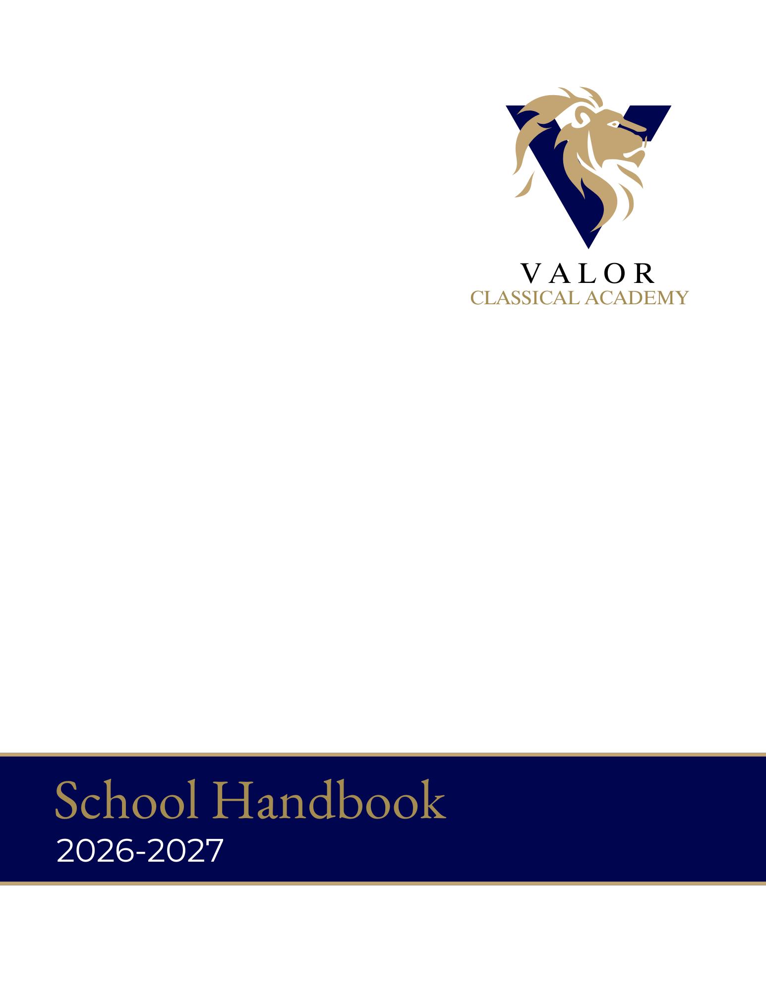 AllparentsandstudentswhoareenrollinginValorClassicalAcademyaffirmbytheirapplicationandenrollment theirintentionalwillingnesstoabidebytheexpectationsandrulespresentedinthishandbookandallotherschool documents,bothexpressedandimplied Thisincludesallpoliciesstatedherein
