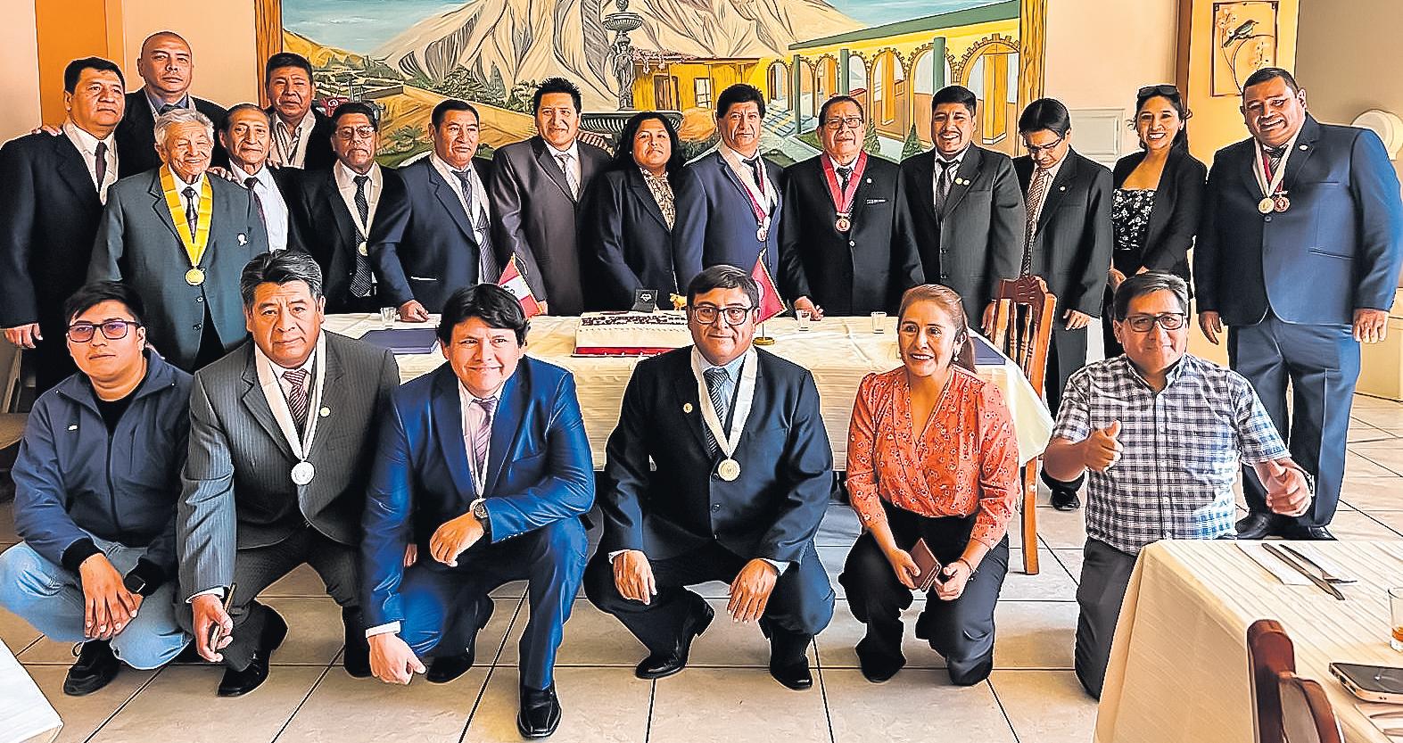 | Colegidos que superan los 25 años de ejercicio profesional: Liu SilvaJorge,Mayta Huiza FrediVenancio,Medina Callo Nelson Martin, Puma Cayllahua Guillermo Felipe, Quispe RamírezJaime Nelson,Reyes Colca Eleuterio,Rojas Olazábal Efraín Marino,Salamanca Pinto CésarJavier,Salazar RamírezJorge Eduardo,Zanabria WisaJavier Francisco, ZeaJara Sergio Lisardo,Cruz Condori Alfonso y el colega Luis Francisco HerreraZegarra ha superado los 50 años de colegiado.|