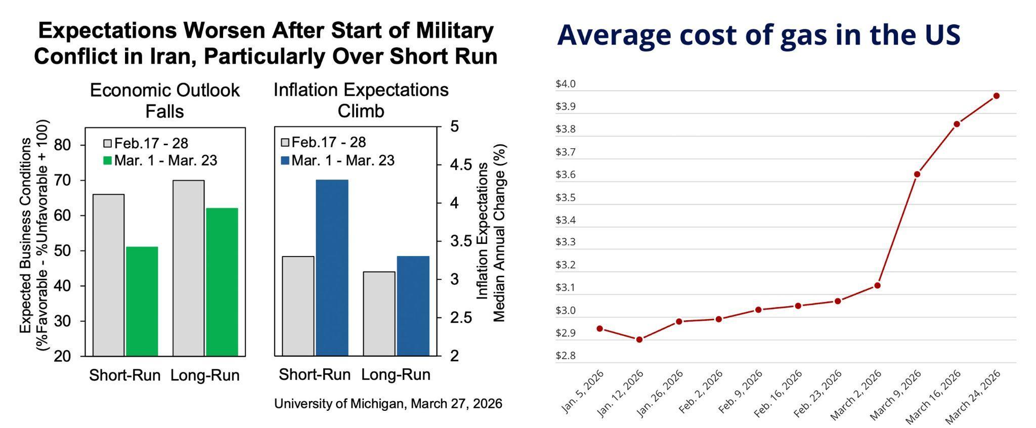 This divergence is important. In simple terms, consumers appear to believe that current conditions will worsen in the near term due to higher energy costs, but are less certain that these pressures will persist over the longer horizon. Rising gasoline prices reduce disposable income, meaning households must allocate more spending towards essentials, leaving less available for discretionary consumption.Combinedwithweakerequitymarkets,thisdynamicraisestherisk ofslowereconomicgrowthifsustained.