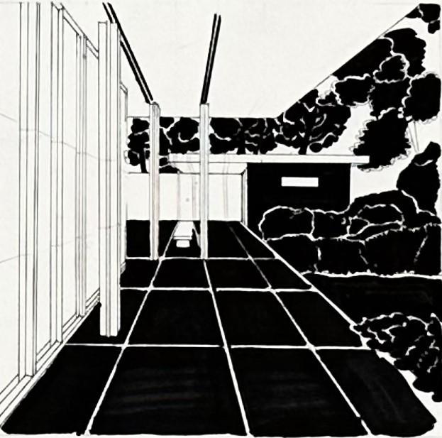 What interests me is the boundary of the pavilion and the different negative spatial experiences perceived by visitors. There is no complete enclosure within the building due to the extension of the roof and partitions, making it ambiguous to distinguish whether one is inside, outside, or in a semi-enclosed space.