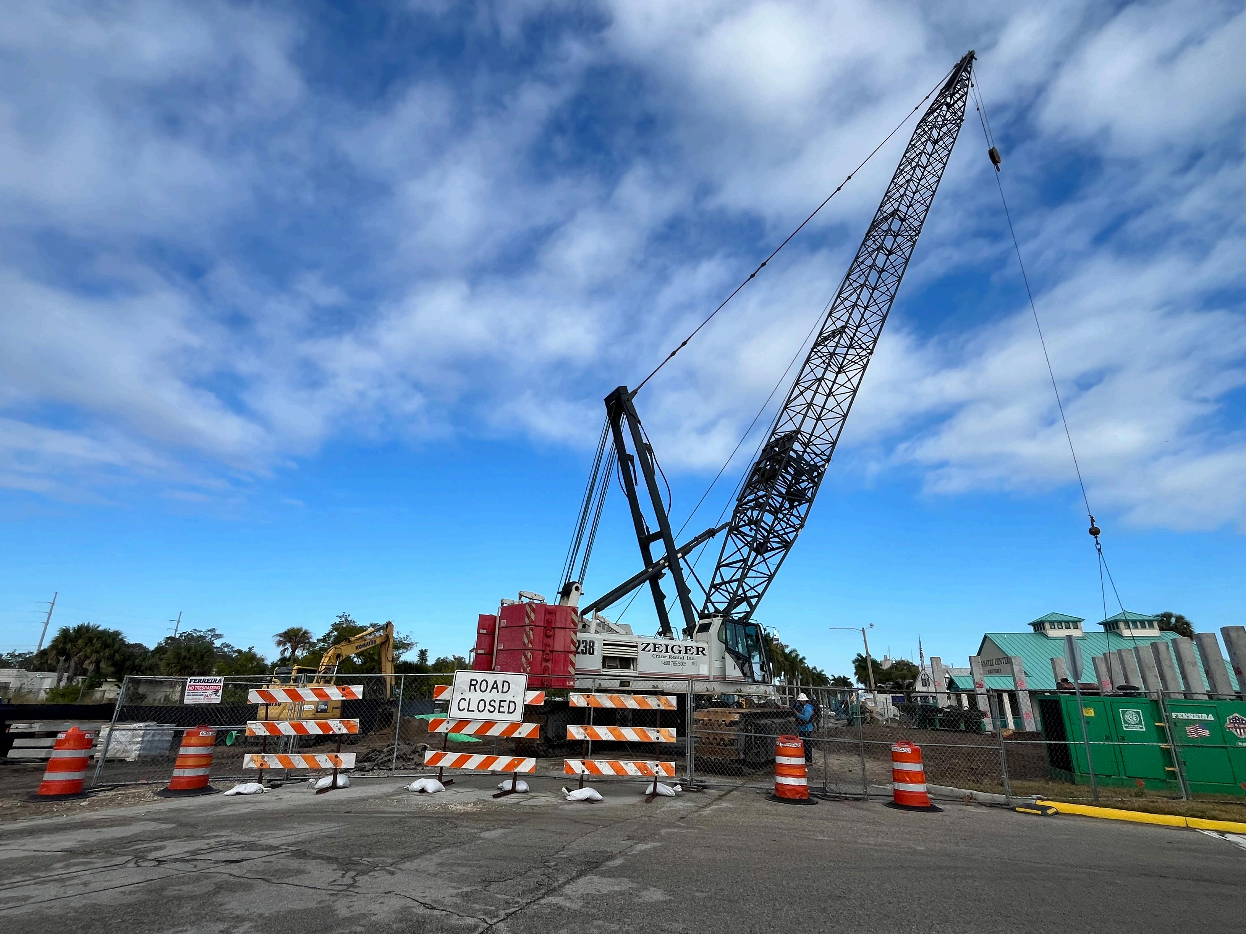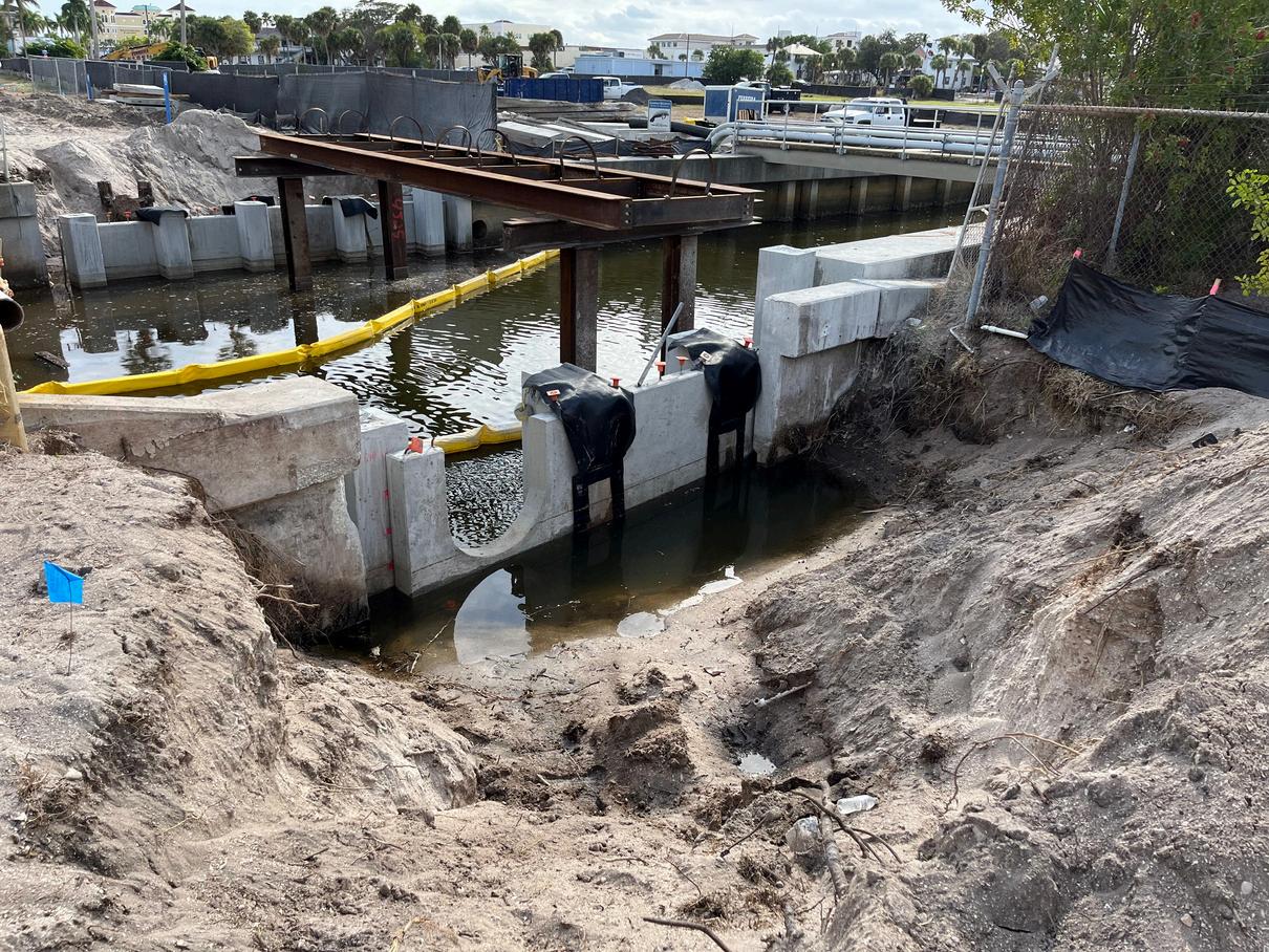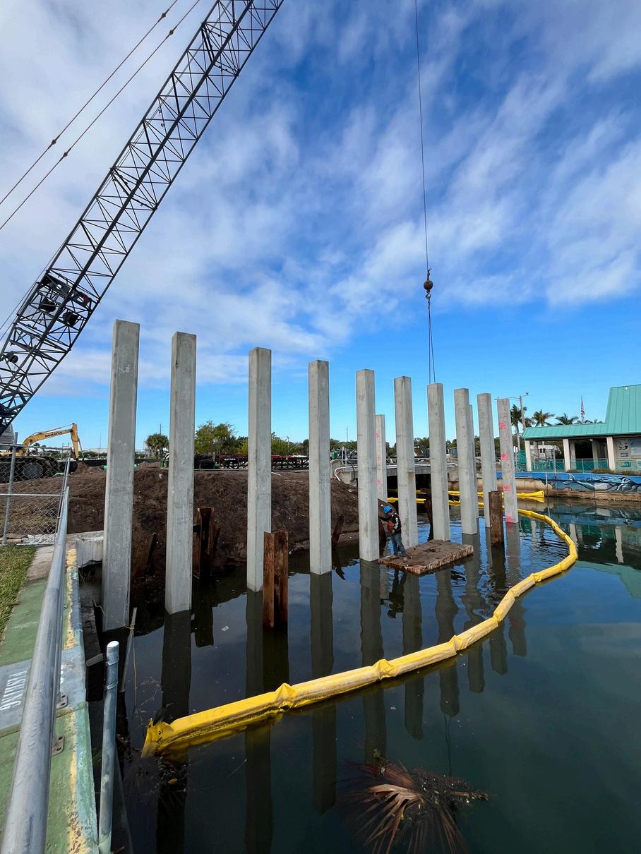 WorkontheIndianRiverDriveCorridorProjectcontinuestoprogress.Piledriving operations are ongoing to prepare for the temporary utility bridge, which is requiredpriortothedemolitionoftheexistingMoore’sCreekBridgeduetoFPUA’s 18-inch forcemain being attached to the current structure. Electrical relocations are underway, storm drainage construction began last week, and water and sewerutilityrelocationworkisinprogress.Inaddition,installationofthesheetpile wallpanelsalongMoore’sCreekhasbegun.