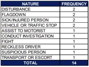 Table-Callsforservicein25thStreet area PatrolArea