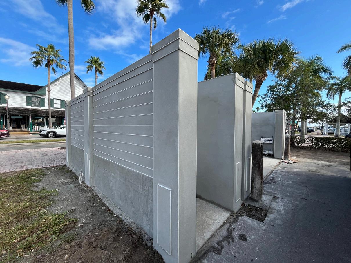 Thecontractorcompletedconcreteinfillalongtheedgesoftheparkinglotto finalize and stripe additional parking spaces near the dumpster enclosure. The color for the dumpster enclosure has been selected, and the contractor hasstartedpaintingtheenclosures.