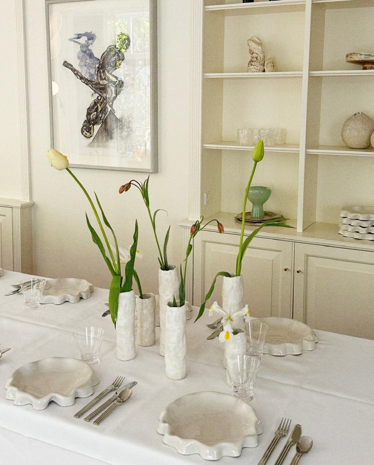 De pequeña, a Raquel Riola le encantaba hacer cosas con las manos, pero fue de adulta cuando entendió que no era solo juego, sino vocación. “Con el tiempo, esas inquietudes se fueron convirtiendo en mi manera de expresarme y entender el mundo”, apunta. Estudió Diseño Gráfico en la Central Saint Martins y, después de años trabajando en un entorno corporativo, el cuerpo le pidió volver a lo que la enamoró de niña: la creación artesanal, el contacto con los materiales y la libertad de experimentar. Abrió su estudio homónimo (riolastudioshop.com) y se volcó en los arreglos florales y la cerámica, que muy pronto llevará de su Galicia adoptiva a su Londres natal, adonde trasladará su taller. “En mi obra, orgánica y sensorial, lo natural y lo hecho a mano tienen un papel protagonista. Me interesa transmitir calma y emoción al mismo tiempo”.