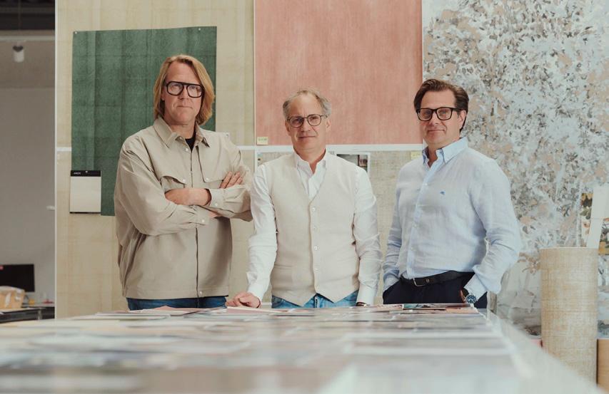 La historia de Arte (arte-internacional.com) comienza en la zona rural de Haspengouw, cuando el abuelo de Philippe y Steven Desart, tercera generación al frente de la empresa familiar, fundó Desart Paints para distribuir pinturas por toda Bélgica. No fue hasta que su padre decidió especializarse en los papeles pintados que la marca se convirtió en el referente en revestimientos alta gama que es hoy. De los más discretos a los más barrocos sus motivos son capaces de transformar cualquier estancia. Abajo, los hermanos Desart junto al jefe de diseño Frederik Decoopman (a la izquierda).