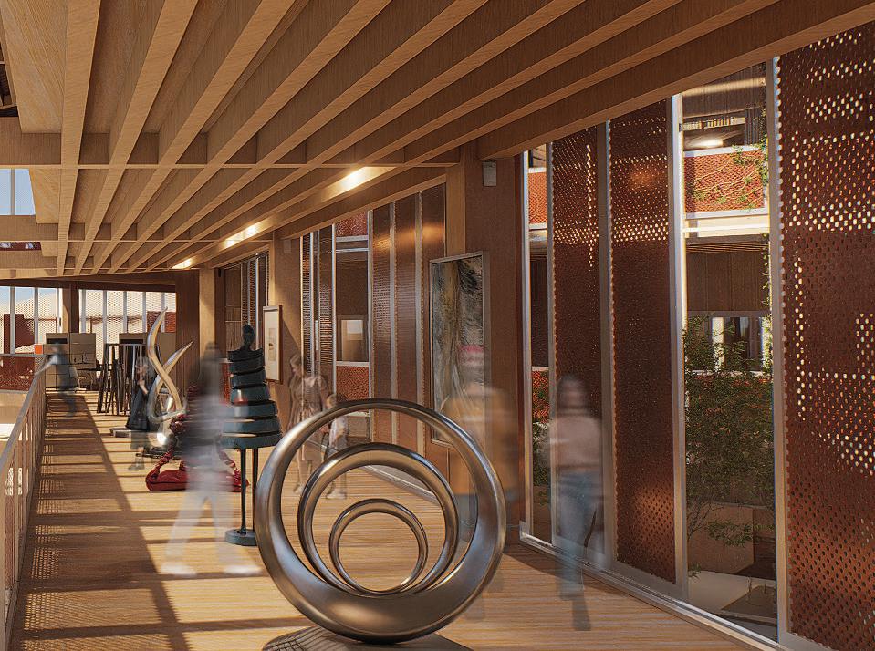 The project proposes an economically self-sufficient artistic community that supports both emerging and established artists. Living, working, and public spaces are integrated to allow artists to create, collaborate, and sell directly from their own spaces. Shared indoor and outdoor areas connect the community to the surrounding museum district, encouraging interaction, mentorship, and collaboration. Flexible courtyards serve as communal spaces, galleries, and pop-up shops, reinforcing the project as a creative ecosystem that connects artists with one another and the broader community.