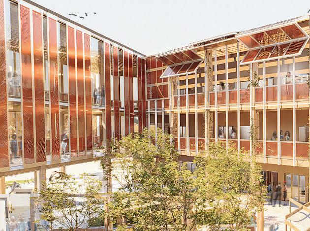 Public galleries, retail, and courtyards anchor the ground plane and connect the site to the surrounding museum district. Workshops and shared production spaces occupy the middle layers, creating opportunities for collaboration and mentorship. Modular housing units above provide flexible live-work environments for artists, while outdoor terraces extend communal activity vertically.