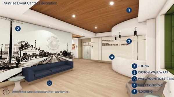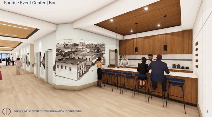 TheFPRAprovidedfundingtosupportthedevelopmentofconceptualdesignsfor thetransformationofthe4thflooroftheSunriseCenterintoaflexiblecommunity meeting and event space. The proposed concept envisions a modern, multipurpose venue capable of hosting meetings, workshops, conferences, and community events. Key elements of the concept include flexible meeting areas, updatedfinishes,improvedlighting,andtechnologytosupportpresentationsand programming.Thisprojectrepresentsanopportunitytoactivateanunderutilized space while supporting community engagement and activity within the FPRA District.
