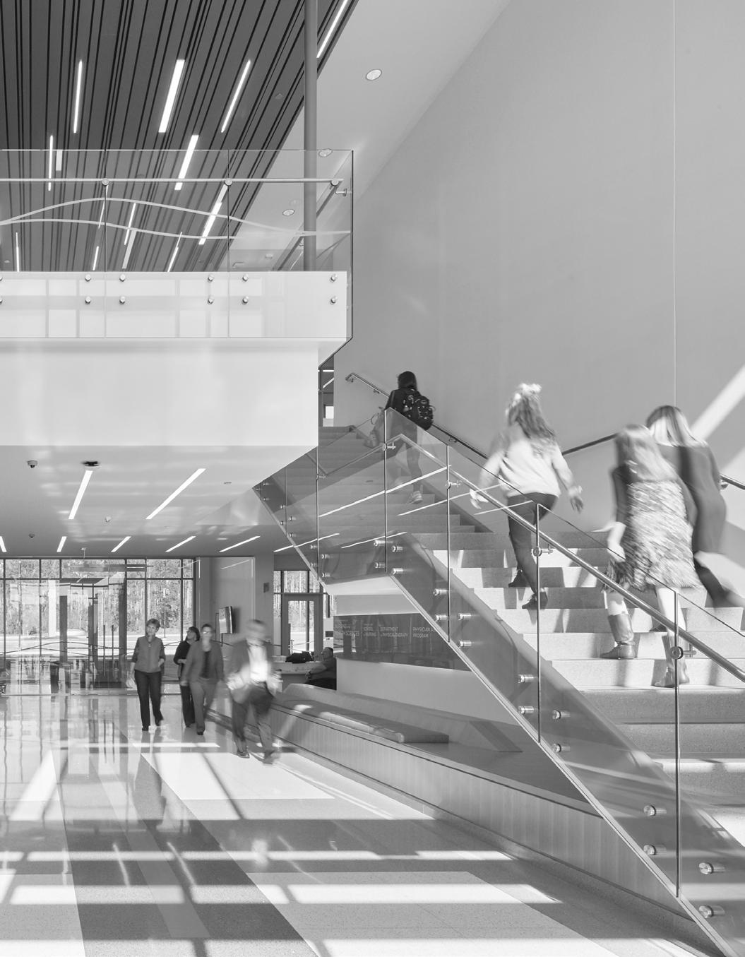 Completed in 2013, Campbell University’s School of Osteopathic Medicine was the first new medical school established in North Carolina in 35 years. The entire facility is a learning laboratory comprised of both formal and informal spaces stitched together by three design principles: learning is everywhere, transparency promotes informal learning opportunities and team-based problem solving is imperative to successful diagnosis and prepares students to collaborate with others in a real-world environment.