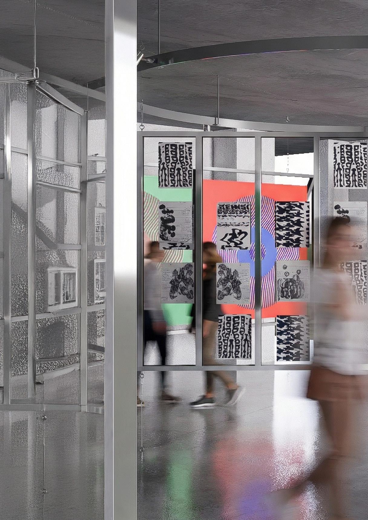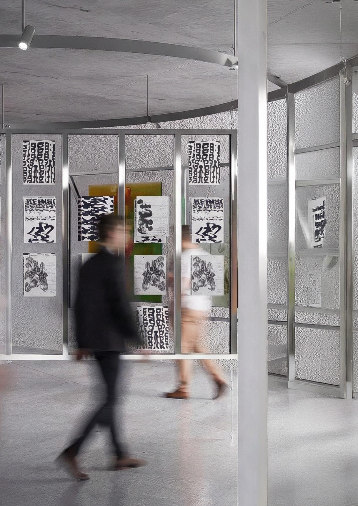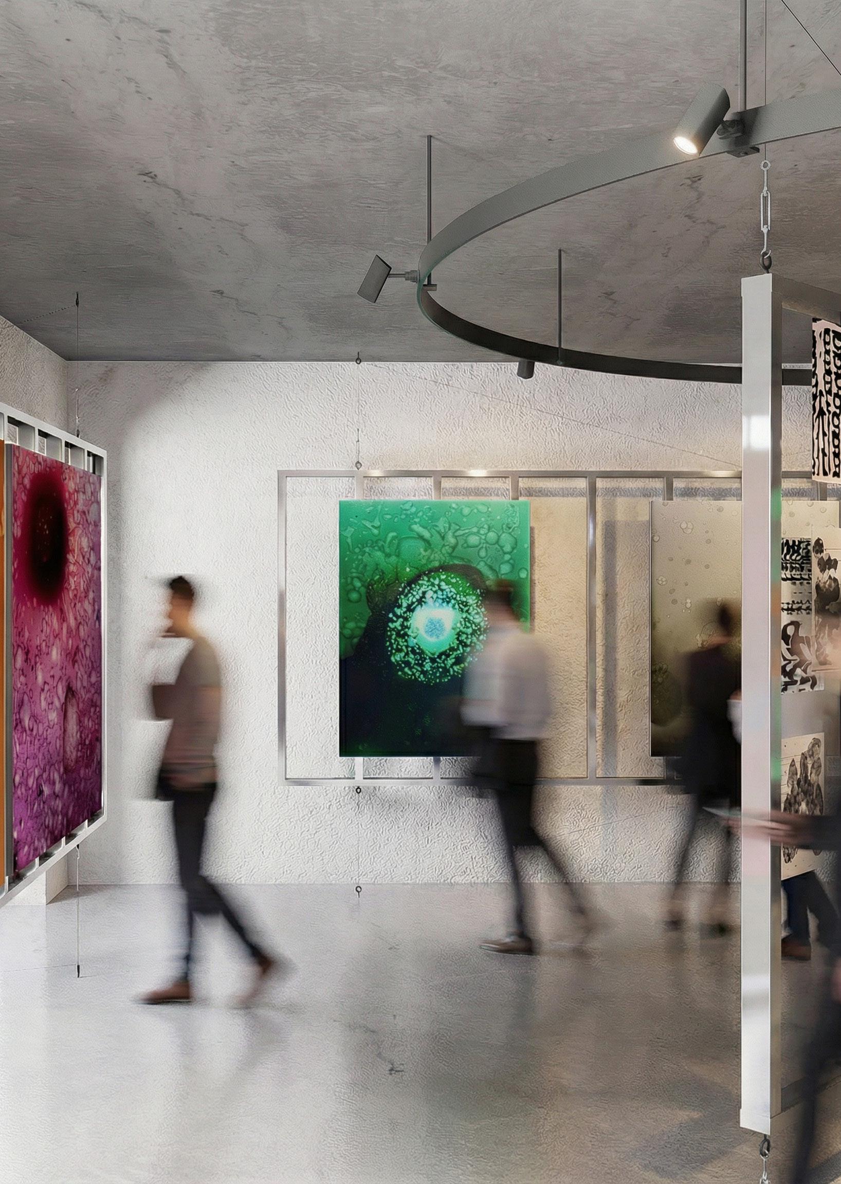 Instalación junto a Galería Patricia Ready para una exposición, que explora la relación entre arte, recorrido y percepción. La propuesta organiza un sistema de paneles suspendidos que permite múltiples lecturas y transparencias, activando el desplazamiento del visitante. La iluminación puntual y la materialidad neutra potencian las obras exhibidas, generando una atmósfera inmersiva, dinámica y flexible, donde el montaje se transforma en un soporte activo para la experiencia curatorial contemporánea.