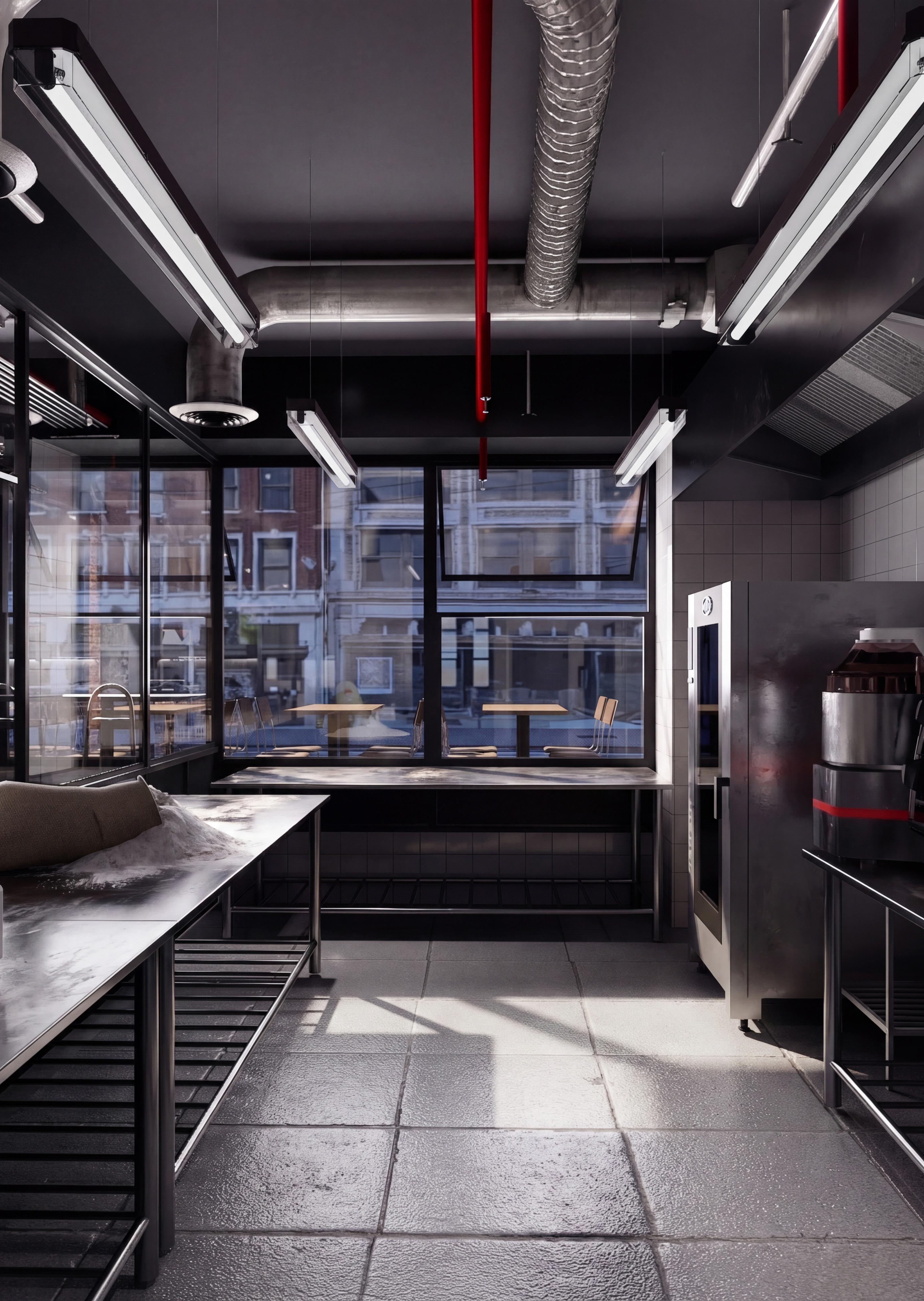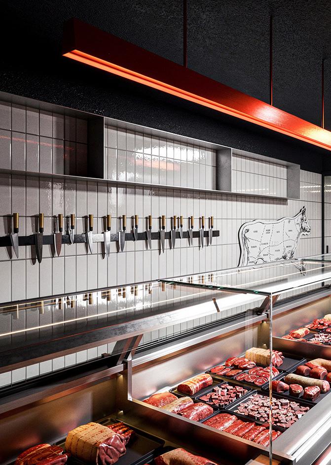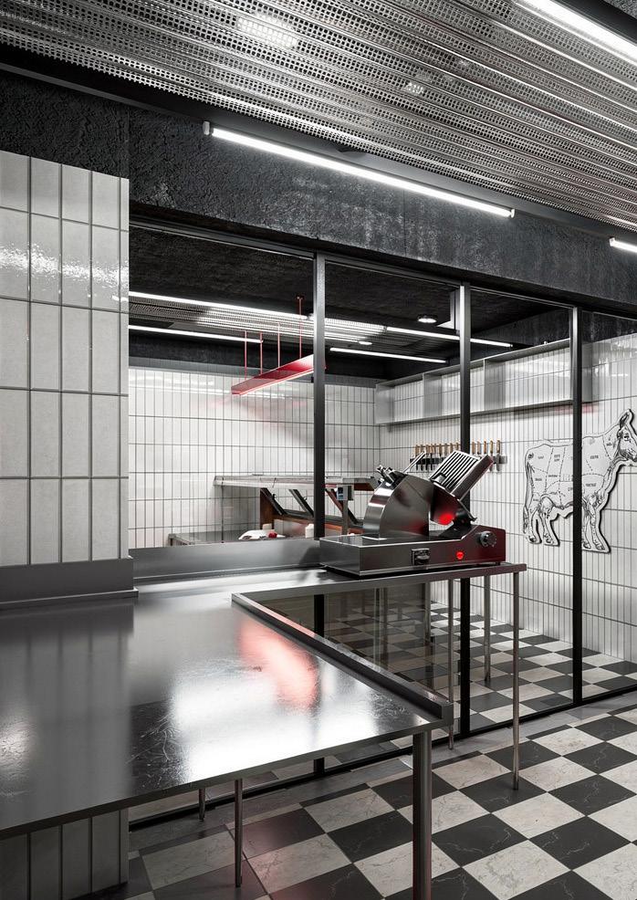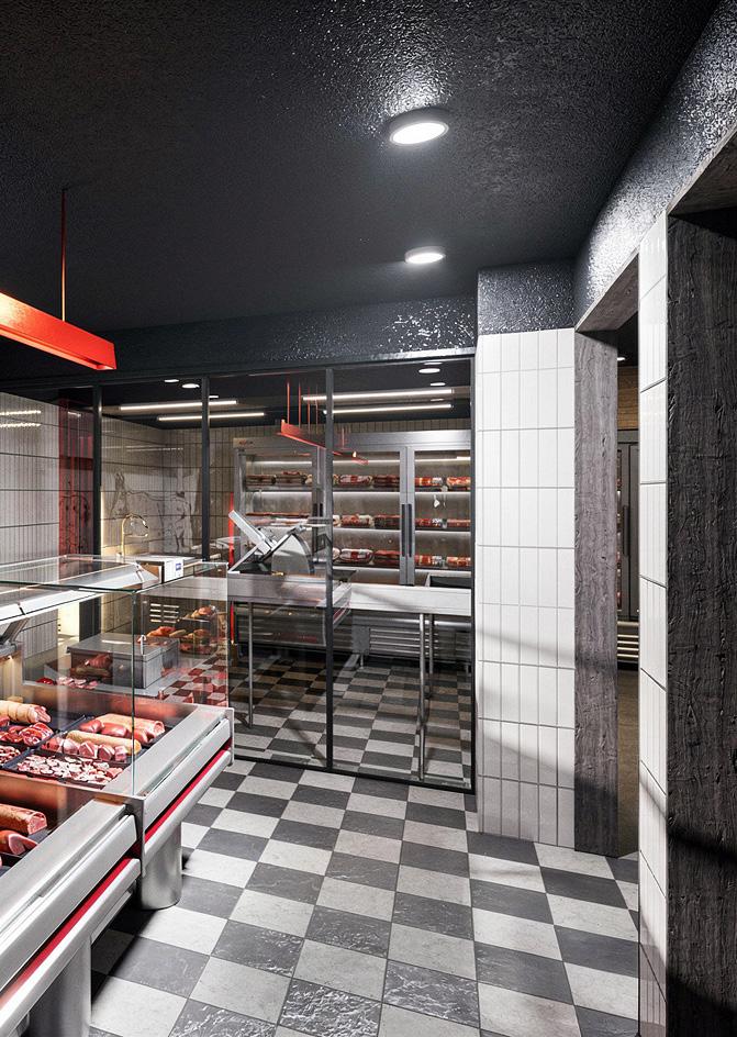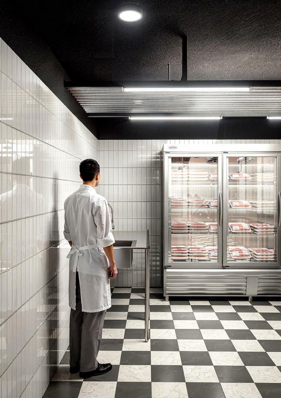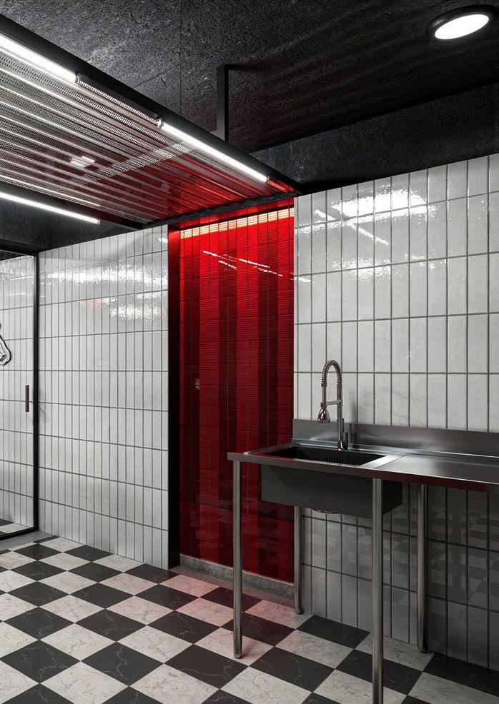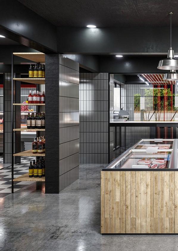 El proyecto consiste en la reconversión de un espacio existente destinado a carnicería, donde se mantienen íntegramente los muros originales sin incorporar nuevas construcciones. La intervención se enfoca en otorgar un nuevo carácter mediante el uso de materiales contemporáneos como acero inoxidable, revestimientos cerámicos blancos y una iluminación lineal de carácter industrial. Acentos en rojo y un pavimento ajedrezado refuerzan su identidad, configurando un ambiente funcional, higiénico y visualmente coherente.
