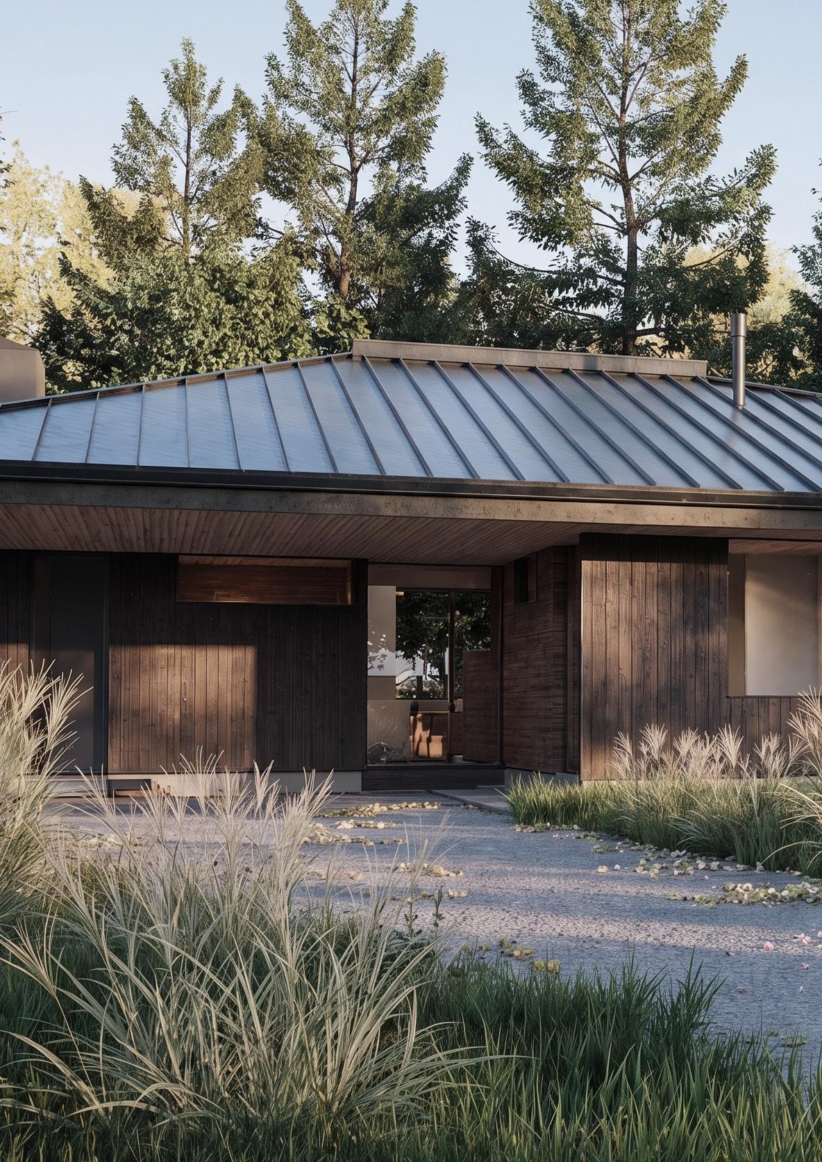 Casa contemporánea ubicada en Puerto Varas, Chile, integrada de manera armónica al paisaje del sur. La vivienda se desarrolla en un solo nivel, con una volumetría horizontal y una cubierta metálica inclinada que reinterpreta la arquitectura tradicional sureña. Revestida en madera natural, la casa transmite calidez y se vincula visualmente con la vegetación nativa que la rodea. Los amplios aleros protegen de las lluvias intensas, mientras que las aperturas enmarcan vistas y permiten una iluminación natural controlada.