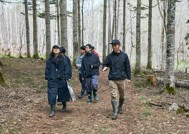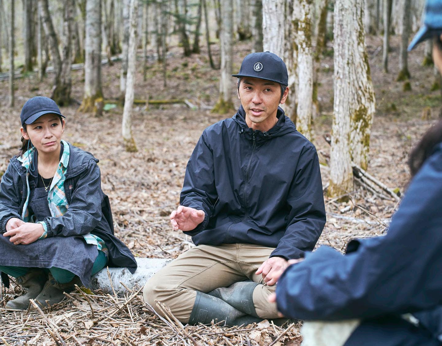 もうひとつ欠かせない要素があります。それは森で働く専門家たちとの出 会いです。例えば森を調査する研究者たち。あるいは、里山で農業を営む 生産者。森の動物たちを狩る猟師。丸太を運ぶための道を整備して、丁寧 に間伐し森を育てる木こりたち。彼らは皆、森を知り、愛し、楽しんでいます。 そして、森の生態系を守るためには、自分たちの暮らしを見直す必要がある と実感しています。私たちは専門家とともに森を歩き、森を学び、どうしたら 森を活かしながら“毎日使いたいと思える製品”がつくれるかを考え続けて います。