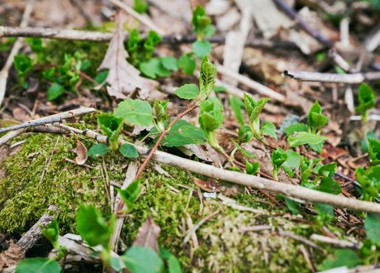 森を知れば知るほど、丸太を中心に組み立てられた林業の仕組みの中で 見逃されている素材がたくさんあることが見えてきます。例えば、北海道大 学の雨龍研究林では、森の密度管理のために年間約 18,000 ~ 19,000 本 の白樺の幼木が間引かれています。これらは、森の環境を良くするために必 要な作業ですが、間引かれた幼木はこれまで有効活用されていませんでした。 また、愛別町の森では、植樹したトドマツやエゾマツの幼木に日光が当たる ように、周囲のヨモギや笹が刈られています。刈られたヨモギはそのまま放 置され、やがて土に還っていました。