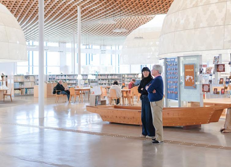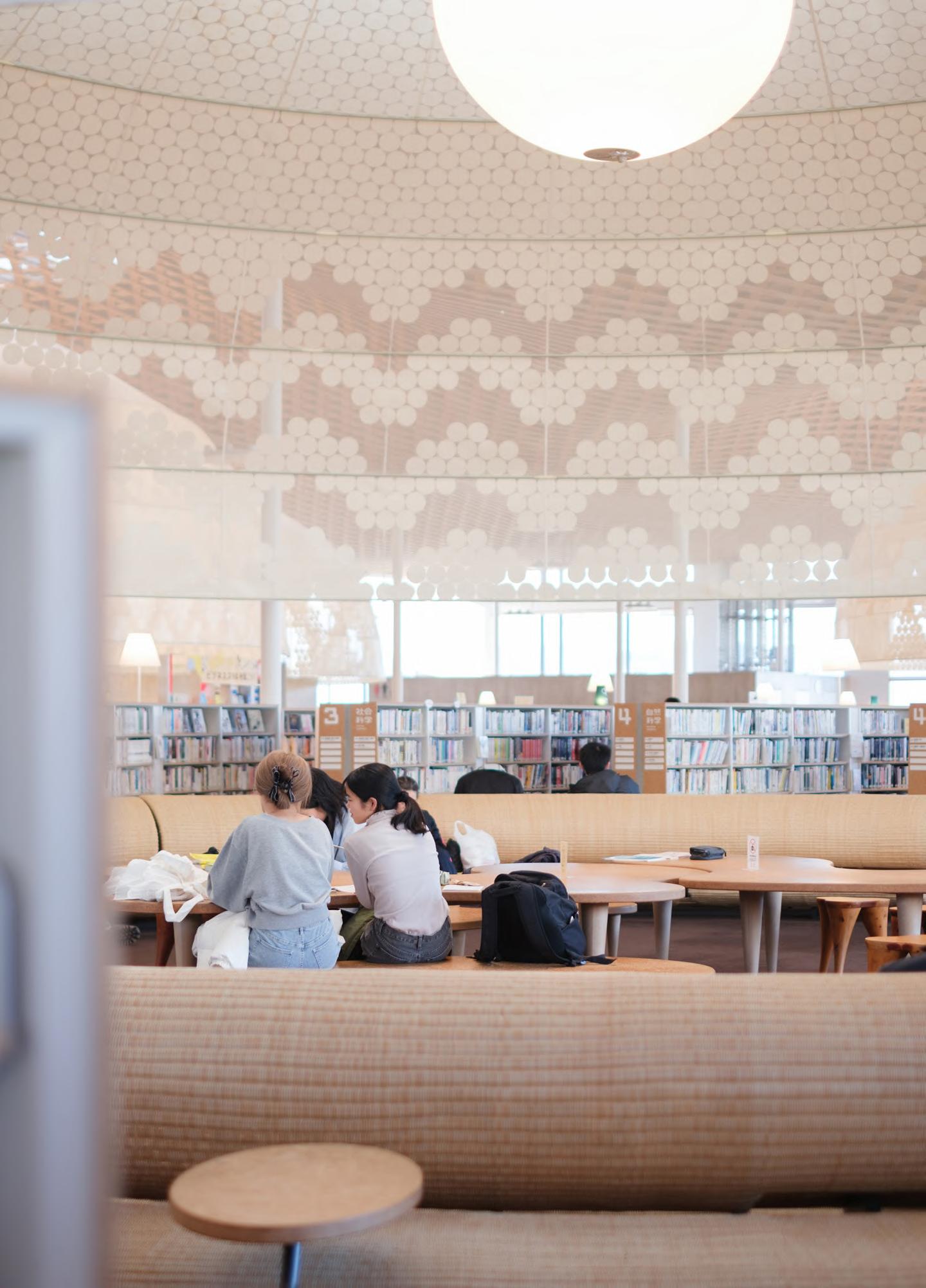目の前に広がっていたのは、いつかSHIROが北海道で実現したい景色で した。学校の授業が終わり、制服を着た学生たちがまちにあふれ出す夕方 になると、「みんなの森 ぎふメディアコスモス」は賑やかさを増します。図書 館、市民活動交流センター、多文化交流プラザ、ホール・展示ギャラリーな どからなるこの複合文化施設は、岐阜のまちでは「メディコス」と呼ばれて 親しまれています。複合文化施設という文字を見ると少し堅苦しさを覚えます が、メディコスの中はとにかく自由。赤ちゃんの泣き声で怒られたり、「おし ゃべりしないで」と注意されたりすることもありません。