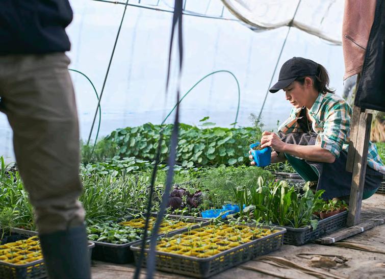 Hiroto & Moeko Fukuyama 北海道で林業、農業、狩猟にまたがる暮らしを営む夫妻。札幌 市出身の寛人さんは、2017 年に森林と市民を繋ぐ特定非営利活 動法人「もりいく団」を設立し、森林環境の保全・再生に重き をおいた森林づくりに乗り出す。2021 年には愛別町に拠点を移 し、自身の農林業を事業化する「福山農林合同会社」を立ち上 げた。以来、夫妻で畑を耕し森を育て、山の恵みと真 に向き 合う日々を送っている。
