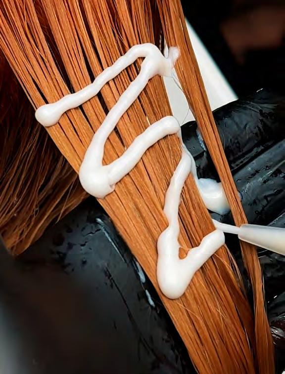 “Copperhaircontinuestobeoneof the most requested colors, but this season we’re seeing coppers are more rosy, so I’ve melted together combinations of reds, golds and oranges with mahogany to create this ultra-modern copper finish.”